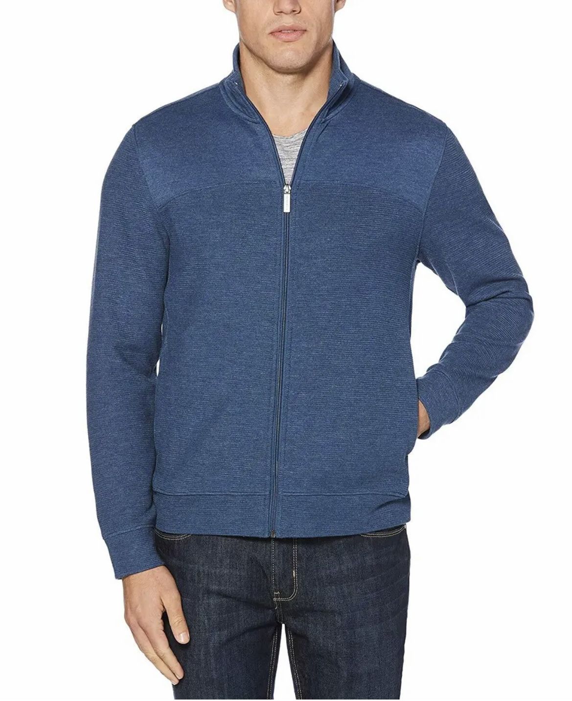 Great looking cardigan style full zip sweater from Perry Ellis. MSRP $79.50! Brand new with tags! $25 each! 3 colors available: Light Grey, Blue, Navy Size: XL Pickup in Lewis Center OH or shipping is available. Details: The fast-approaching chilly weather doesn't have to be a bad thing. It just means you get to update your attire again. And what better addition than a jacket that's suitable for the office and everyday casual occasions with seam detailing along the chest, two front pockets, double-face textured fabric and jacquard fabrication to create an intricate, slightly raised and textured pattern, this one pairs well with everything. 60% Cotton, 40% Polyester Imported Zipper closure Machine Wash Full-zip jacket with two side-seam front pockets and self collar Jacquard fabrication creates intricate, slightly raised and textured pattern