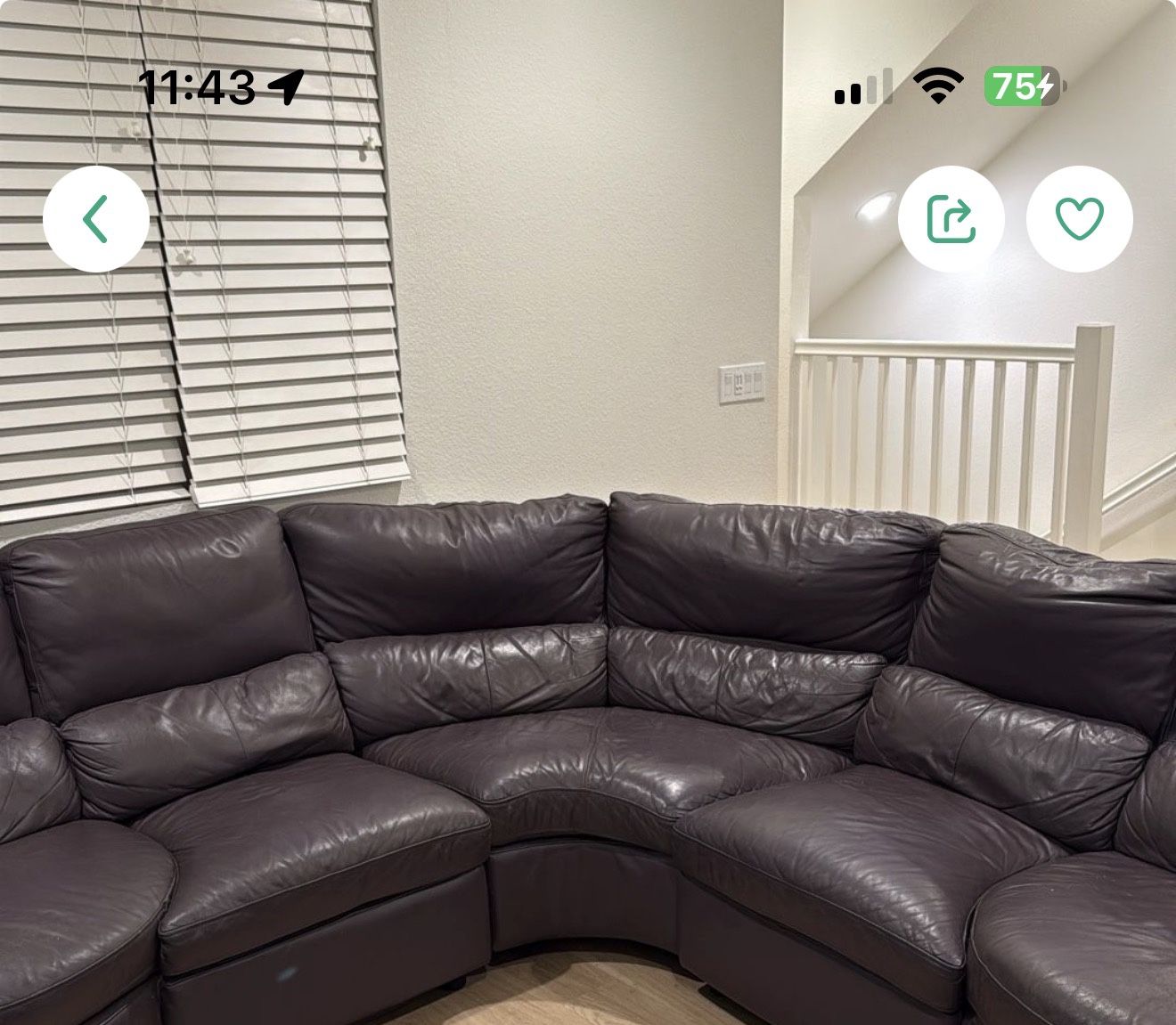 Living room couch in decent condition has minor cat scratches.