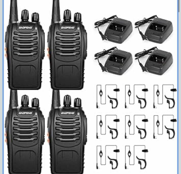 Out of the Box] Set up in seconds! Simply rotate the channel knob to select 16 Channels presets. Sync 4 radios on the same channel for instant communication—no programming required. Perfect for families, events, or team coordination. FCC ID:2AJGM-BF888S [Long Range Communication] Walkie talkies achieve up to 3 miles in open areas and 0.8-1.3 miles in urban environments (range varies by obstructions and battery level). Ideal for hiking, construction sites, festivals, and emergency preparedness. [USB-C & Base Charging] Each BAOFENG BF-888S two-way radio includes a 1500mAh USB-C battery (3-4hr charge time) and charging base. Enjoy 8-96 hours of runtime per charge, depending on usage. Built to last through extended adventures or work shifts. [Multi-Functional Design] Features an easy-access side-key flashlight, monitor mode, and customizable settings: DCS/CTCSS privacy codes, emergency alarm, squelch control, VOX hands-free operation, power-saving mode, and low-battery alerts. Adapts to any scenario! [Earpieces included] Hands free compatible with radios and the acoustic tube fits snugly in the ear and keeps your conversations private.