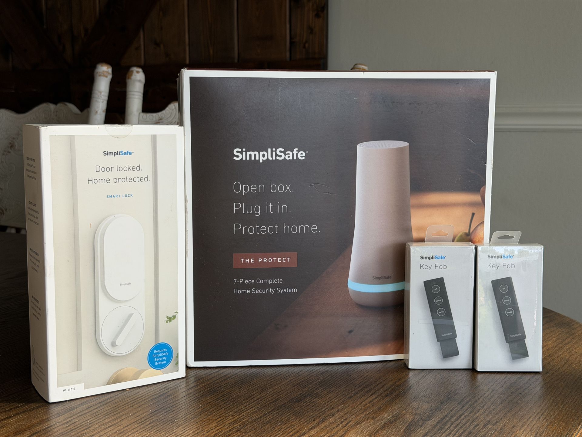 SimpliSafe 7 Piece Wireless Home Security System + 2 key Fobs + Smart Lock-white
