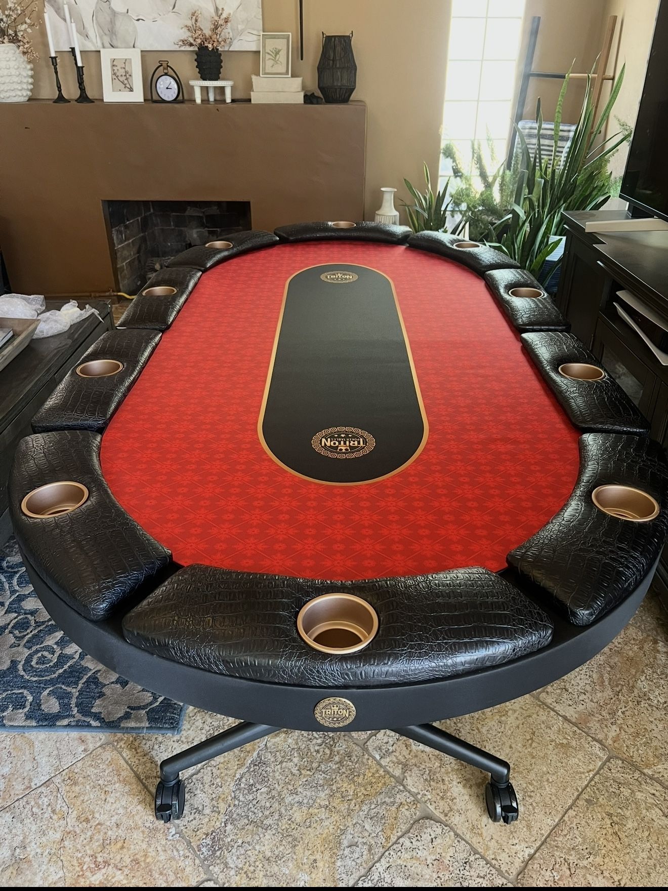 Triton 10-player poker table originally purchased for $1,800 plus tax. Selling for $1,400. One armrest has a small tear, but the table is otherwise in very good condition. Folds for easy handling and storage. Only used a few times. Located in Globe, AZ