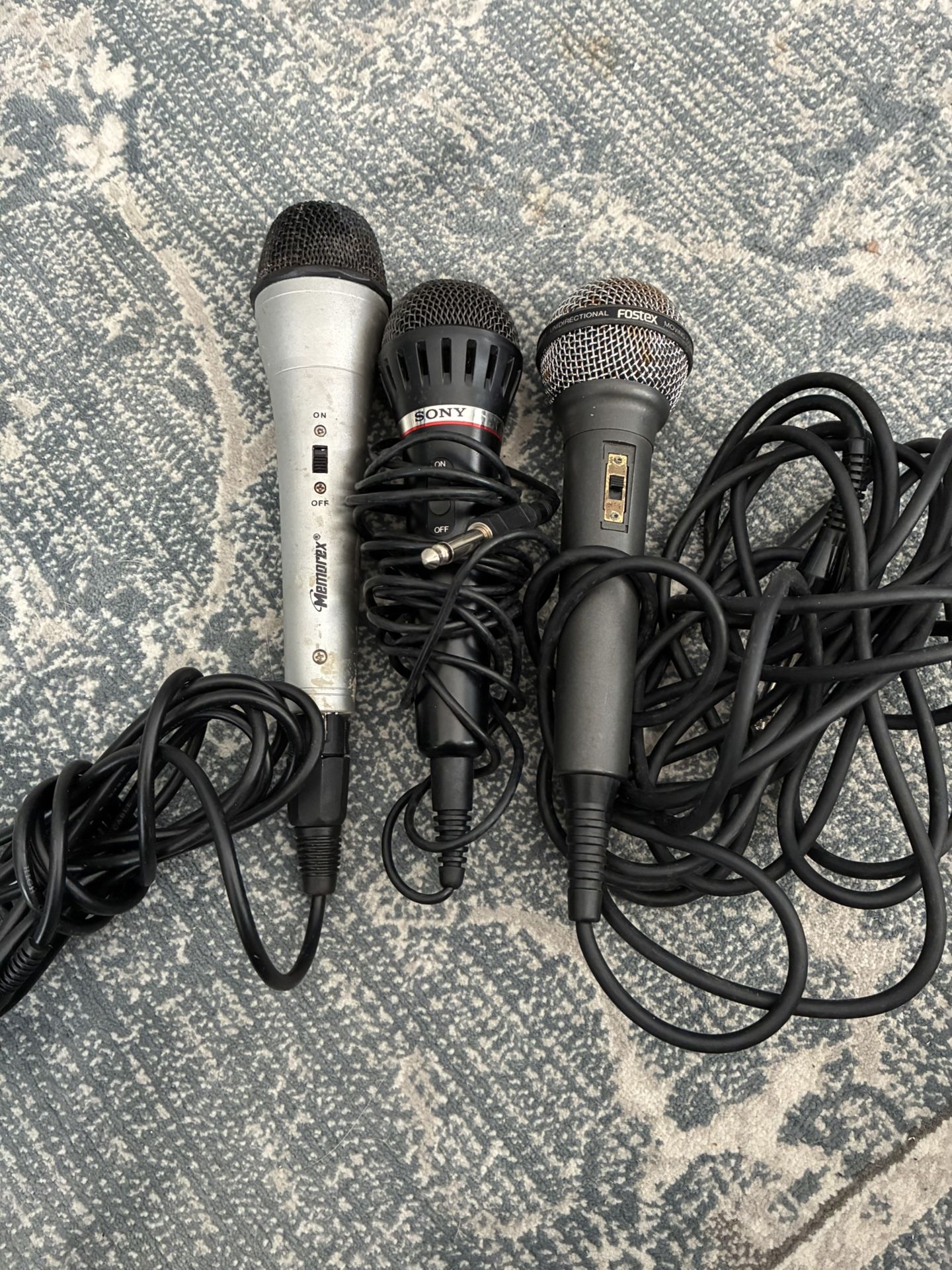 Set a three microphones. Memorex, Sony, and Fostex. All in working condition. Older types from the 1980s.
