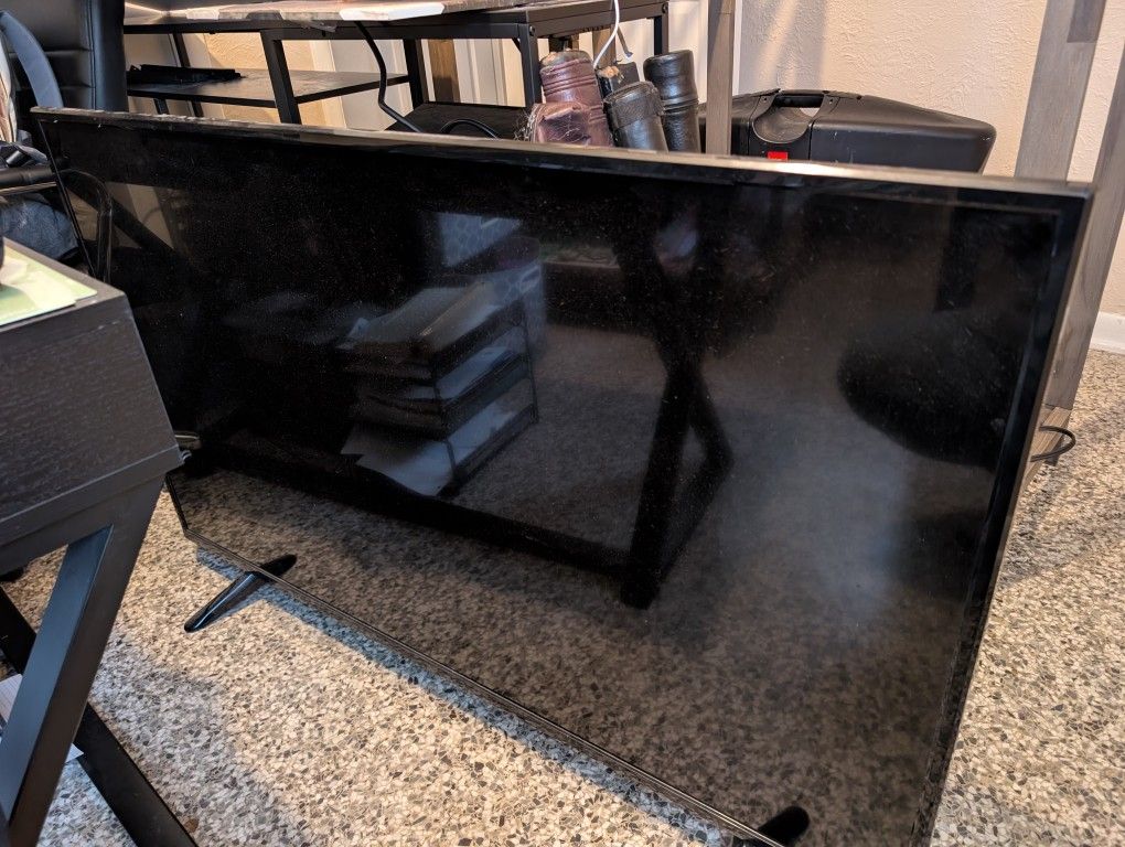 Insignia TV. 55 Inch. Works great. Not a smart TV, does have HDMI connections