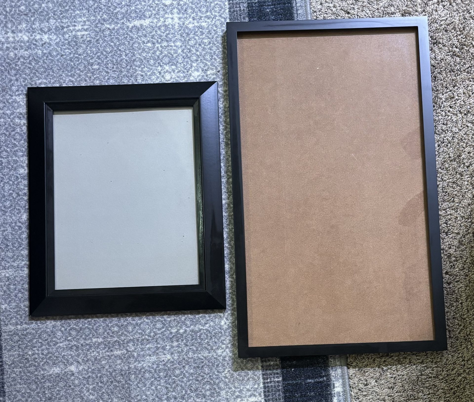 Two black frames with glass. Great condition, sturdy. Frame total dimensions shown in photos. These frames will fit prints of the following sizes, respectively: 10.5x 13.5 23.5x13.5 $15 each or $25 for both. Pick up in SE Portland (South Tabor/Richmond area)