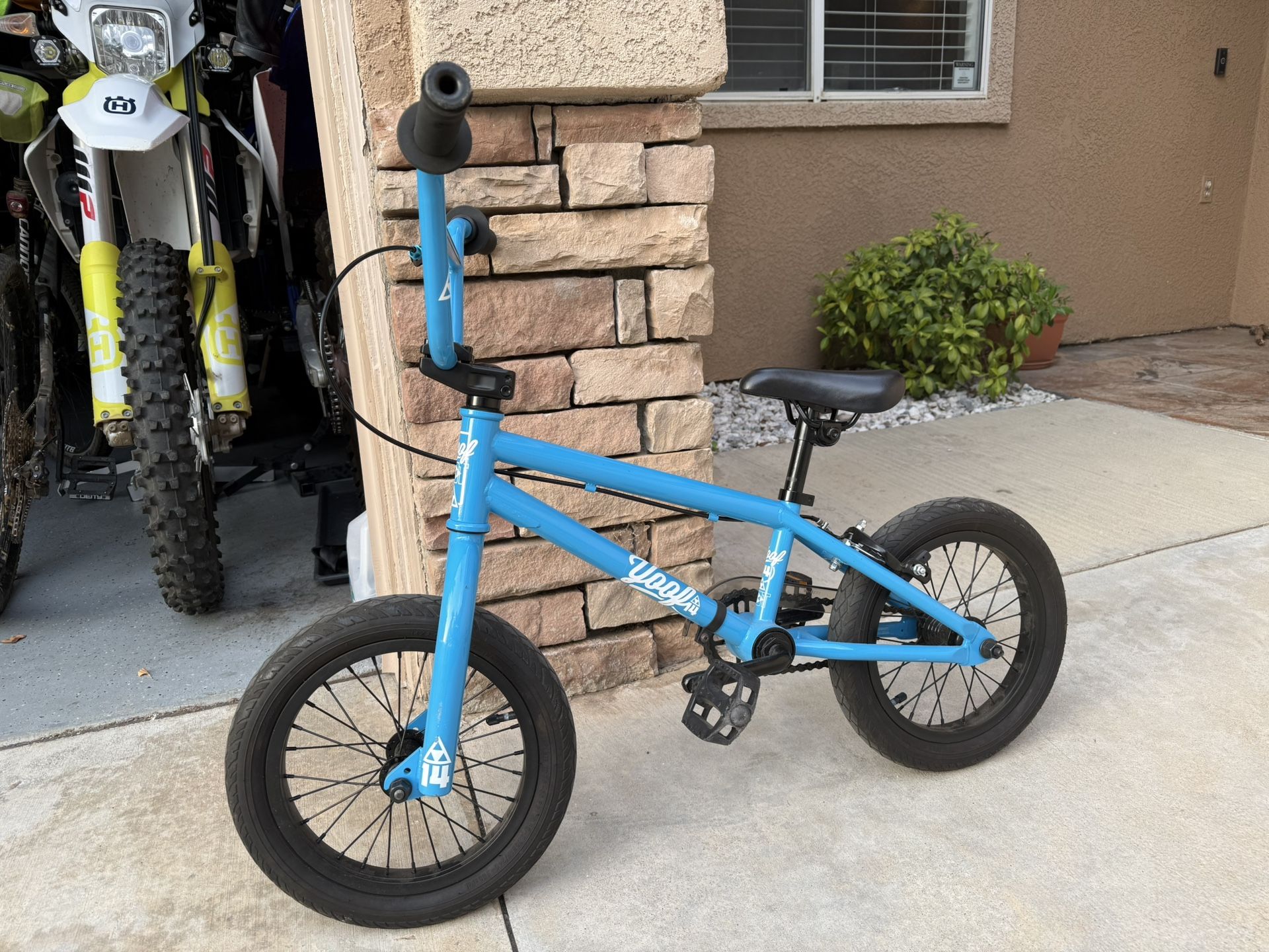 Almost like new. Kid finally started riding a bike. Outgrew this one. $200 obo The Yoof 14" is the newest addition to the Yoof range from Jet BMX. The 14" frame & wheels make this bike a perfect fit for smaller riders that are needing a bigger bike than their current Balance or 12" pedal bike. The Jr size grips, seat, pedals & brake setup make this bike an ideal first bike at a great affordable price. Features include: pro spec geometry hi ten steel frame with top tube gusset, 6.5" steel bars, 9t Semi sealed cassette hub, 2.0" Innova tires & much more.