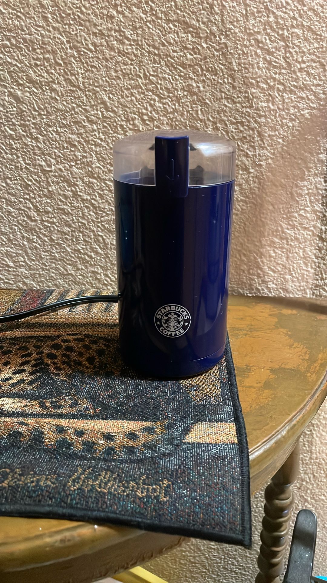 Blue Starbucks electric bean grinder Small grinder. It in great condition and it works.