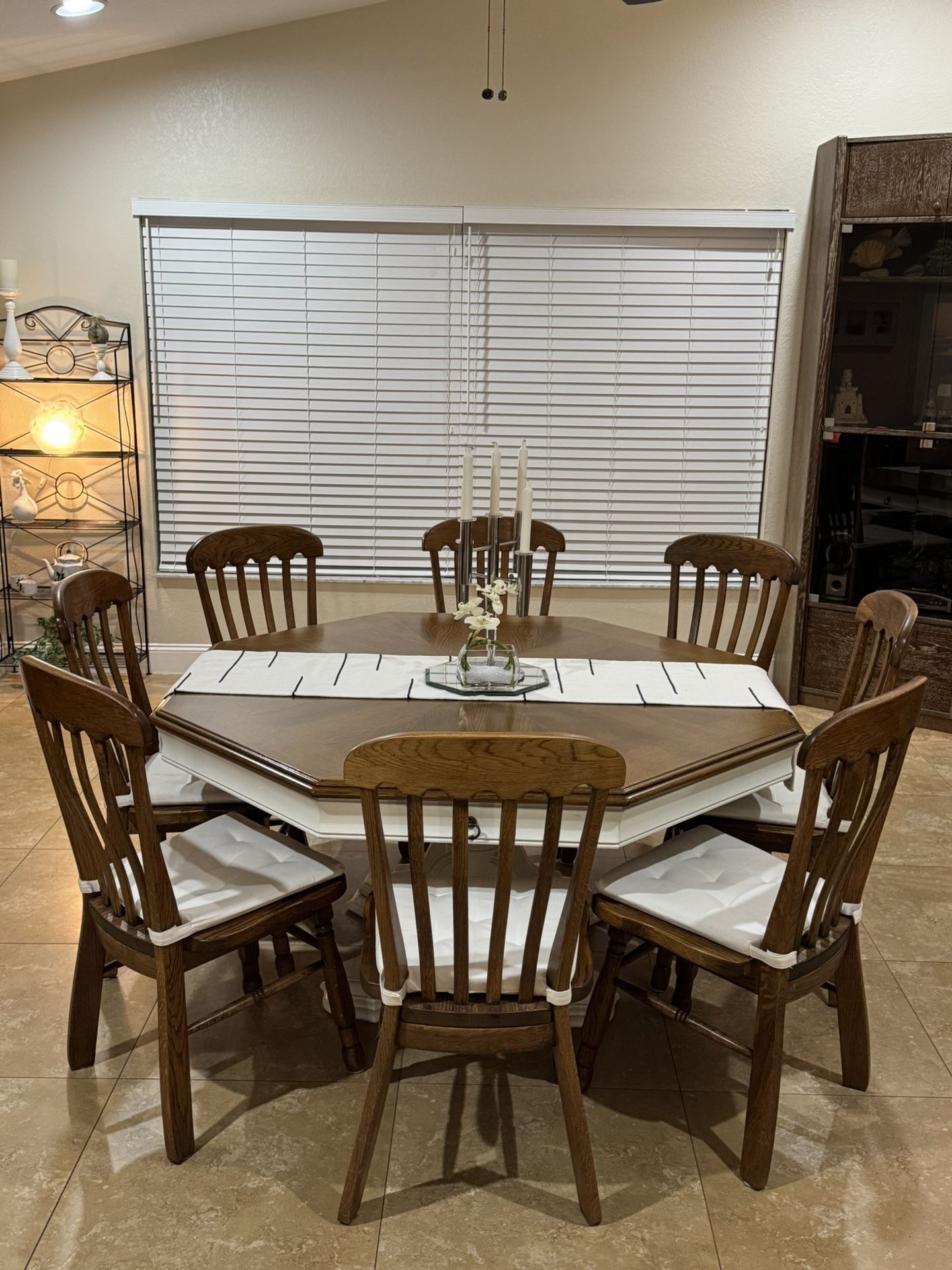 German Octagonal Oak Dining Room Table - Seats 8-10 - 5 Of 5 Set