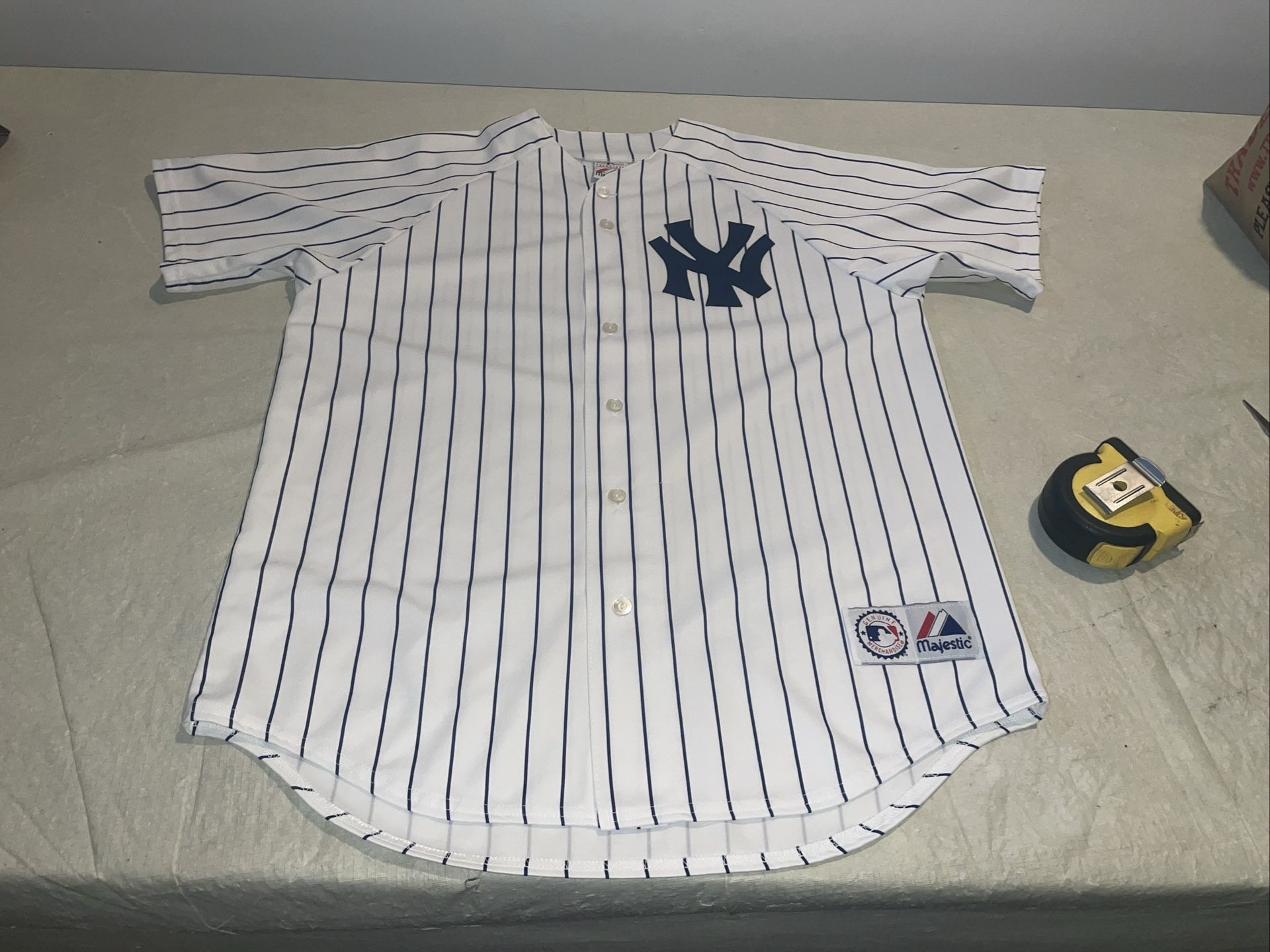 New York Yankees Majestic Jersey Mens Large White Sewn Clean PinStripes vintage