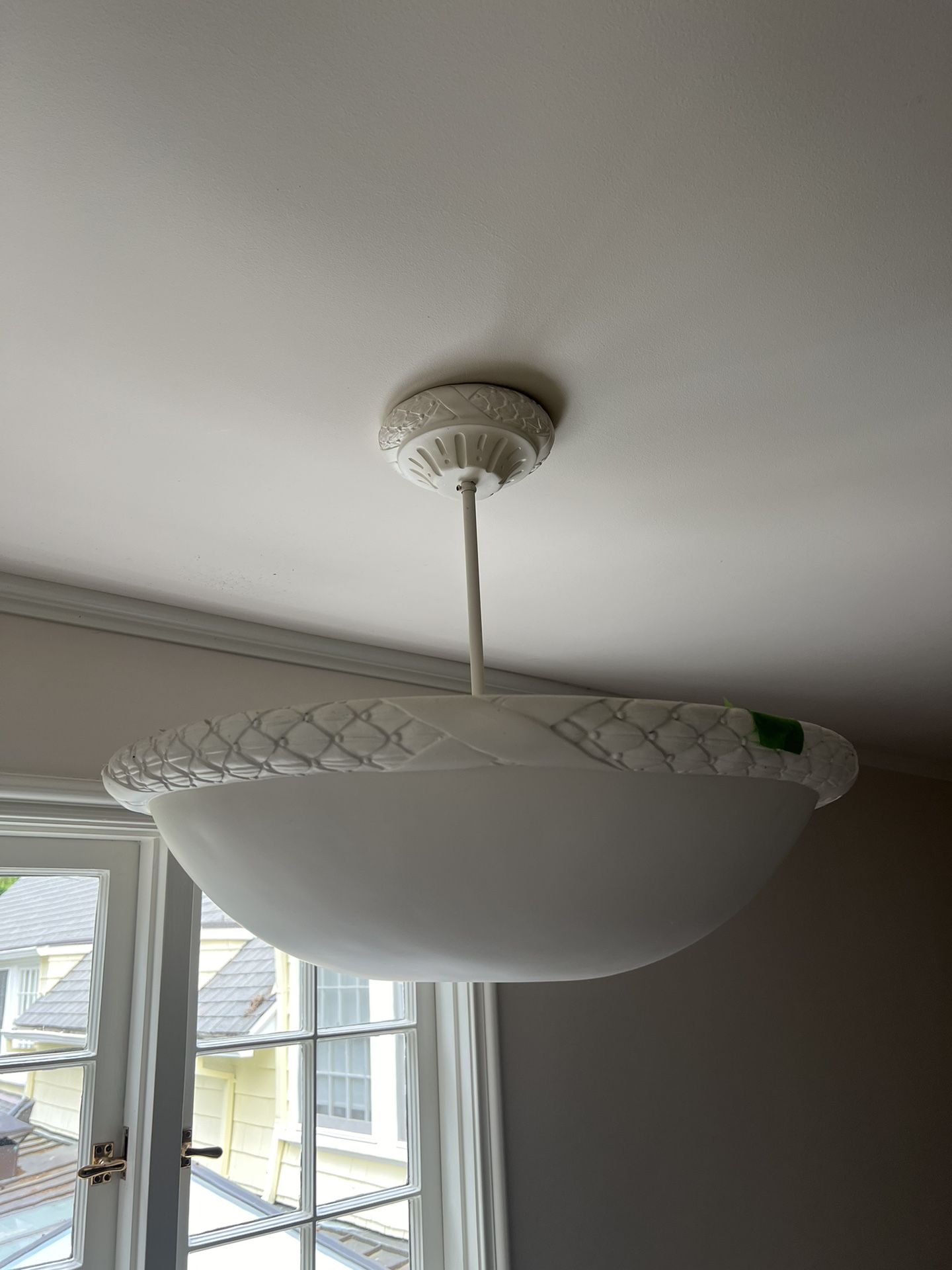 All three are ready to hang in your home. Beautiful white plaster chandelier and two matching wall sconces. Large chandelier is 25” across. Pair of sconces are 14.5” each. I am motivated to sell, make an offer!