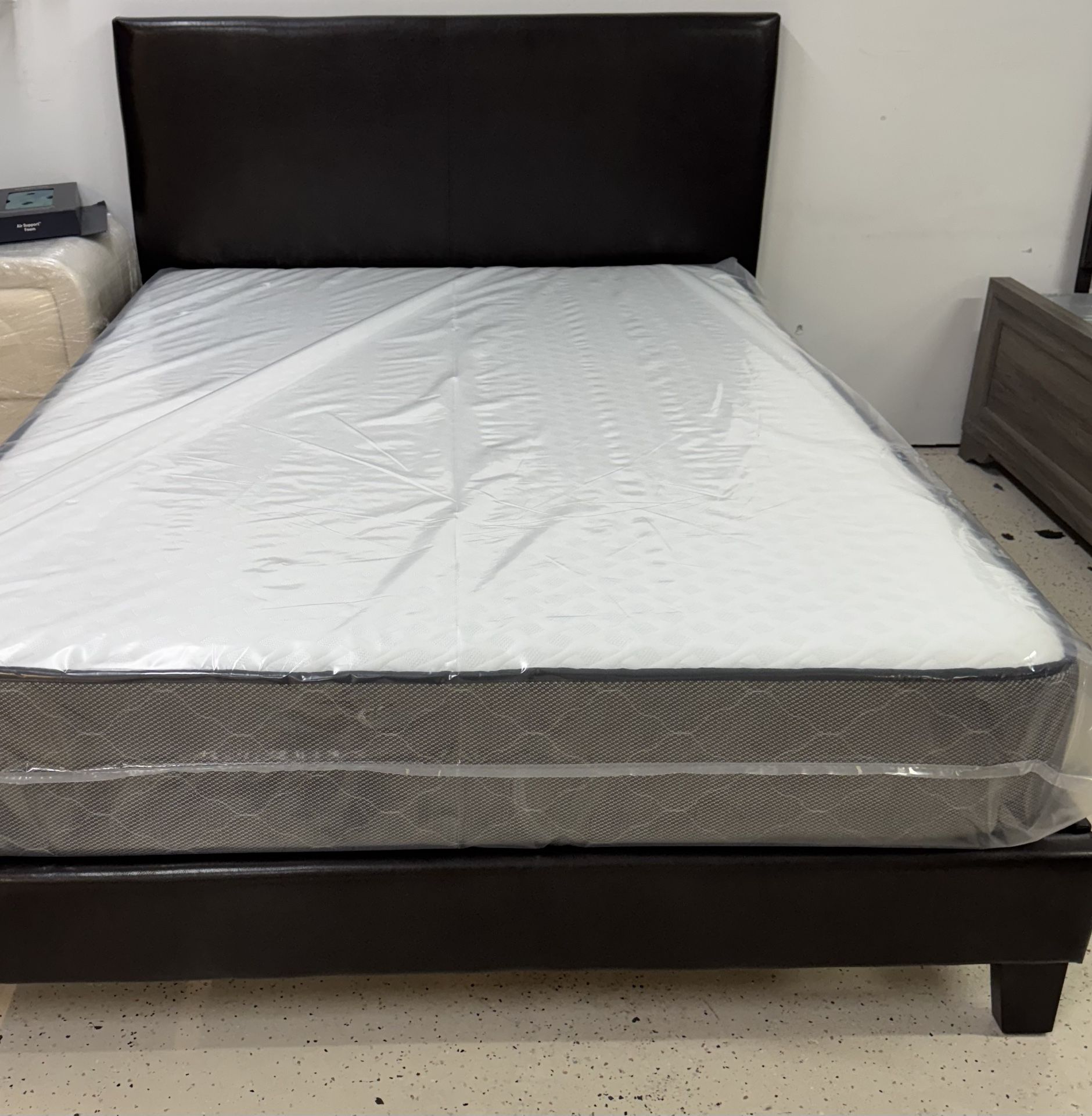 New Leather style bed Platform bed no box spring needed Includes full mattress Free local delivery