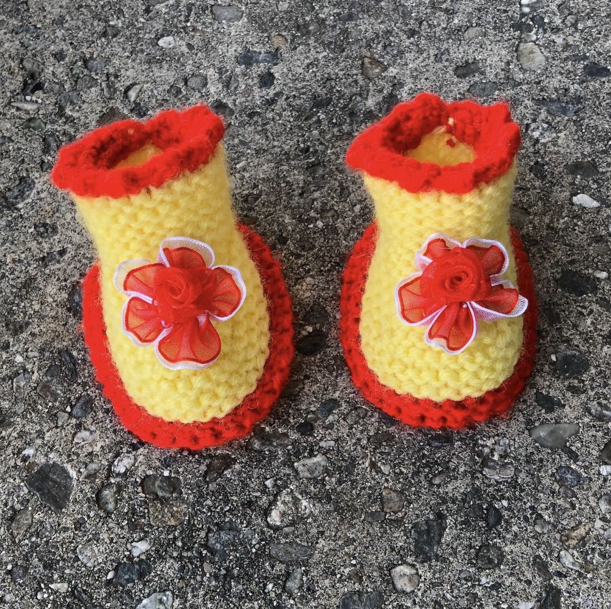 New Hand-Knit Socks for American Girl Doll or 18” Dolls – Yellow & Red – Handmade Doll Clothes