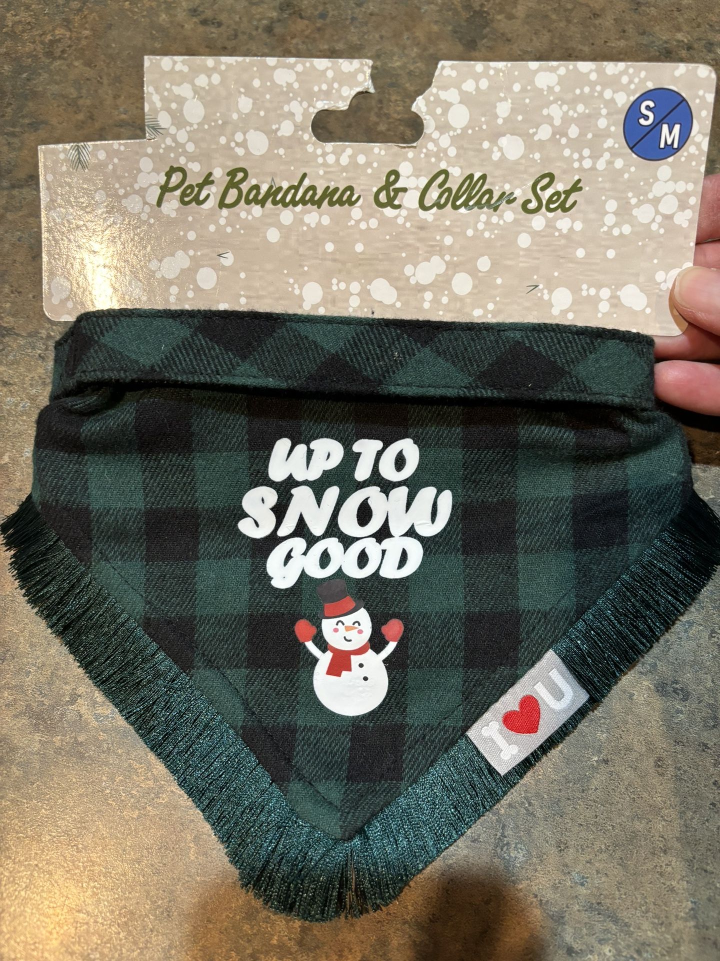 Up to Snow Good dog bandana and collar set. New. Small medium