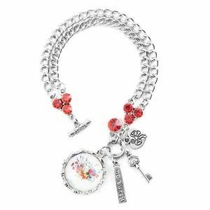 Red Austrian Crystal Charm Bracelet in Silvertone