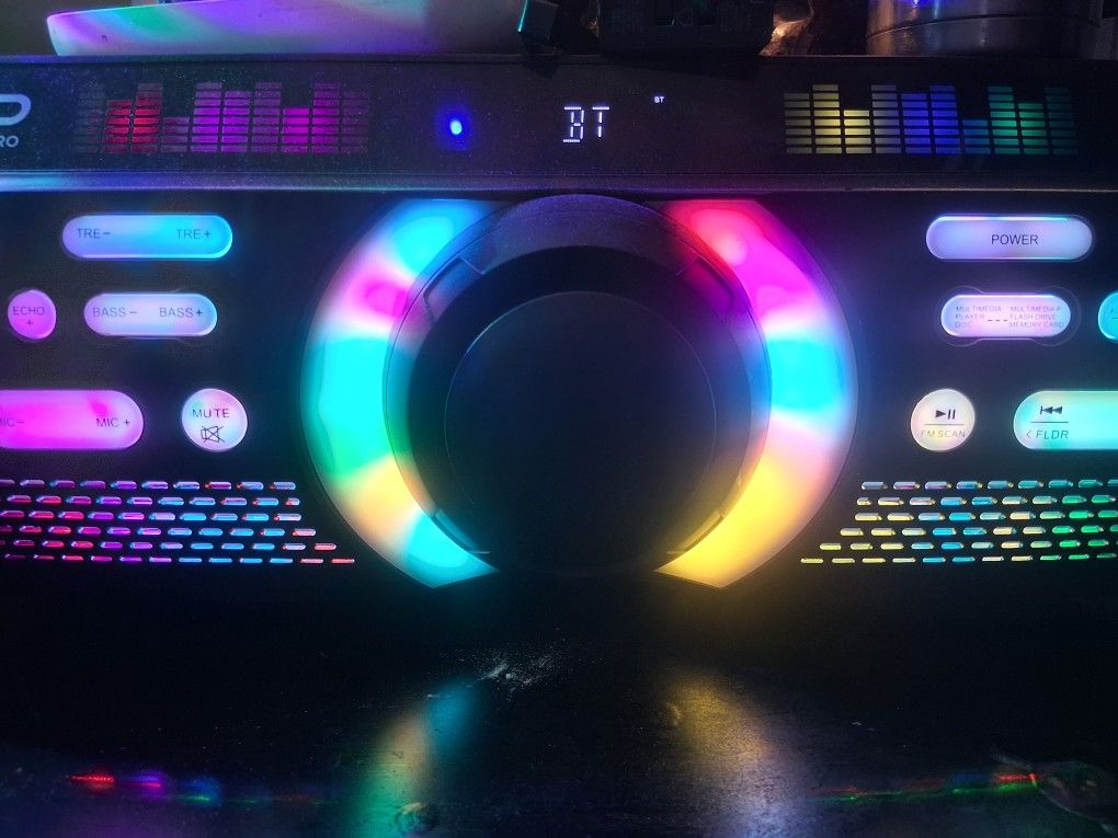 Karaoke /Bluetooth system with dj lights embedded in the speakers it's great for family parties BRAND NEW IN THE BOX SELLS FOR $ 1,500 - $2,000 DOLLARS