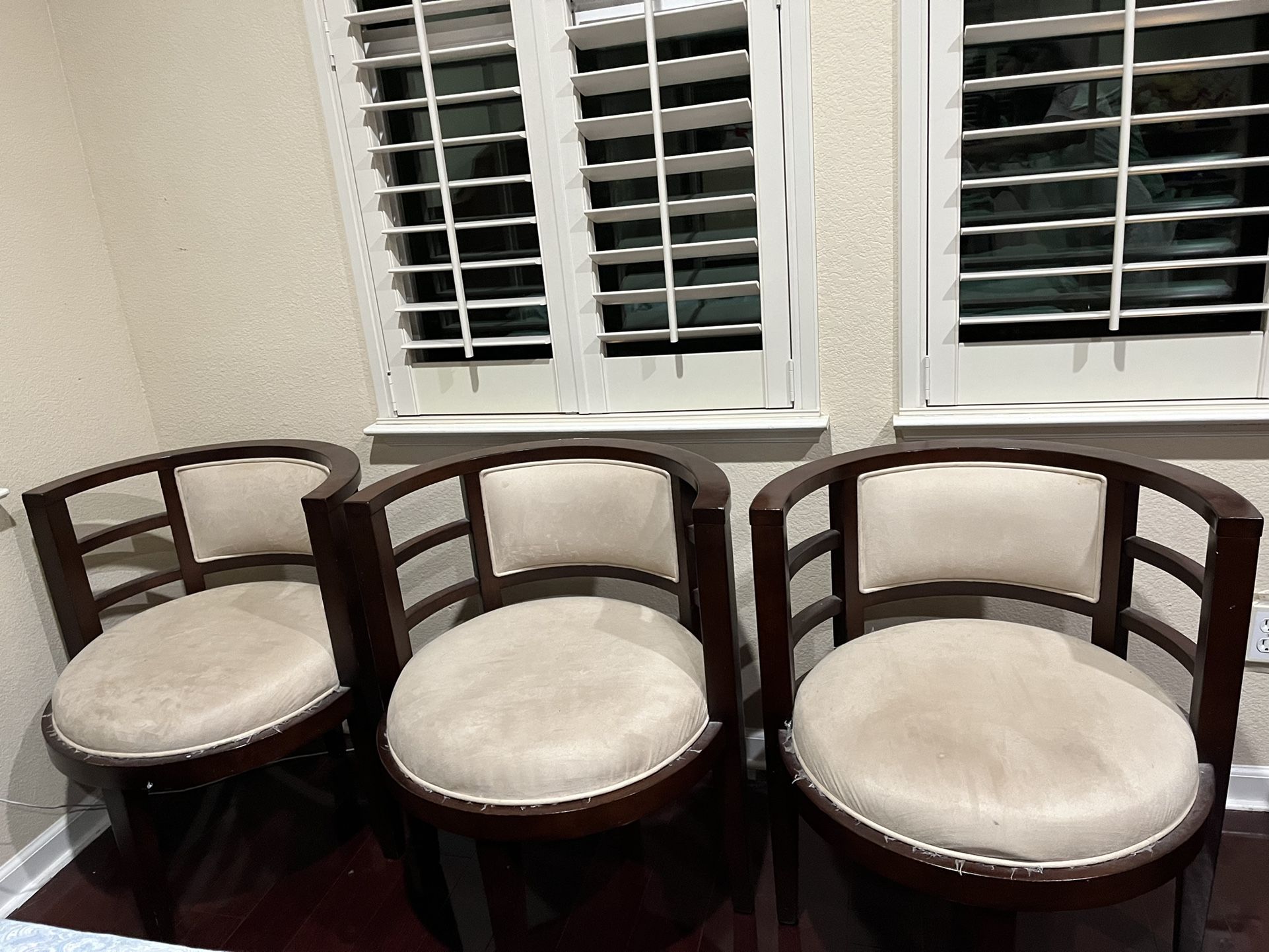 Metropolitan Furn Modern White And Cherry Tub Chairs - Set If 3 For $250