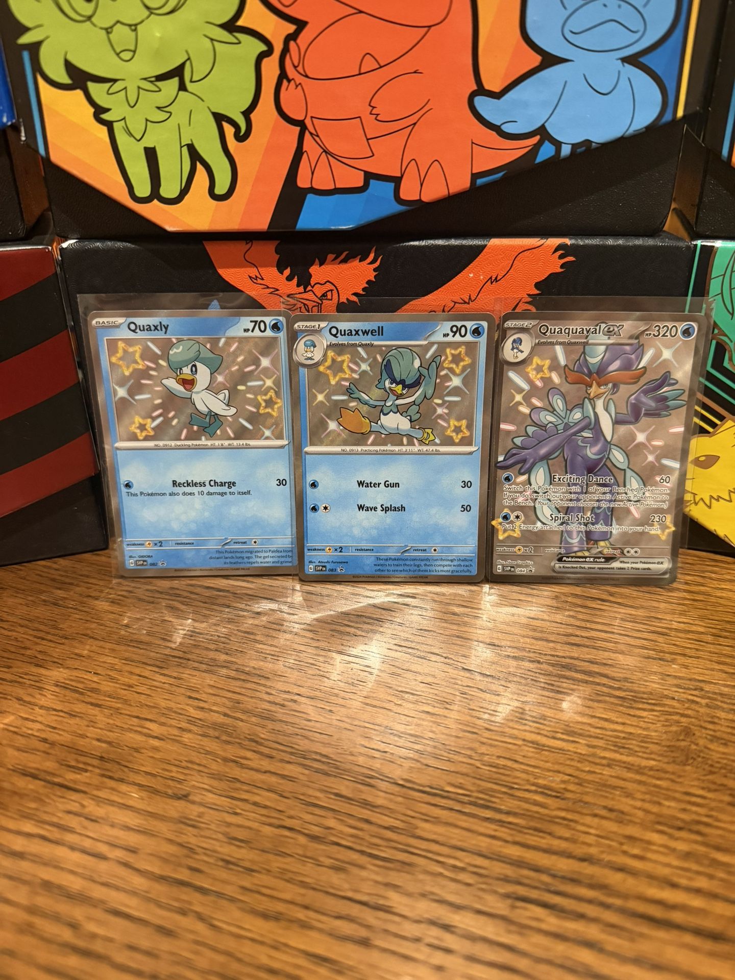 Shiny Quaquaval ex, Shiny Quaxwell, and Shiny Quaxly PROMOS