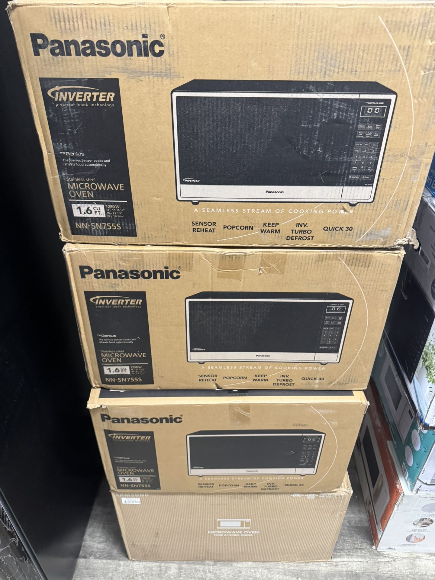 Genius Sensor Cooking with 14 Preset Menus Sleek, tactile touch-button controls Quick 30 second Keep warm feature (up to 30 minutes) Child Lock Spacious Interior, 1.6 cu. ft. 1250W High Cooking Power Dimensions Exterior: 21-7/8" W x 11-15/16" H x 19-7/16" D Interior: 16-7/16"W x 9" H x 18-1/2" D Turntable: 15" diameter (dishwasher-safe) Panasonic 1.6 microwave New Stainless Steel Retails $239 Our price$139 Er appliances 21932 lakeshore Blvd Euclid Ohio 44123 Monday-Thursday 12-6 Friday 11-6 Saturday 11-4 Sunday closed 216——-417———7922 Warranty provided ⭐️⭐️⭐️⭐️⭐️ customer Service