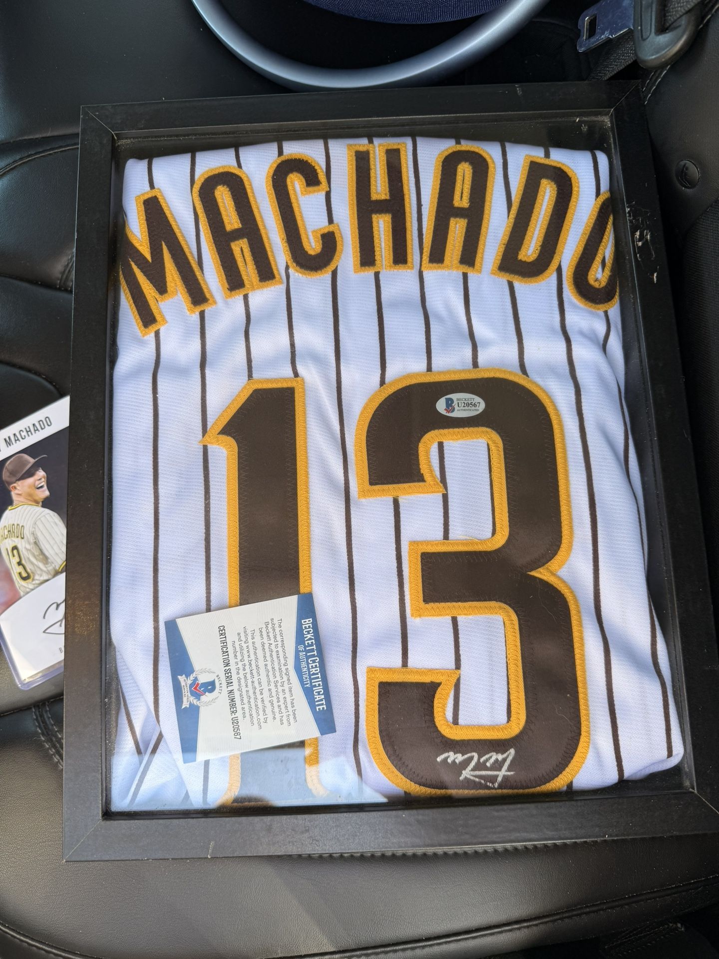 Selling my framed San Diego Padres Manny Machado autographed jersey. Authenticated by Beckett. Verification #U2056 Asking $250