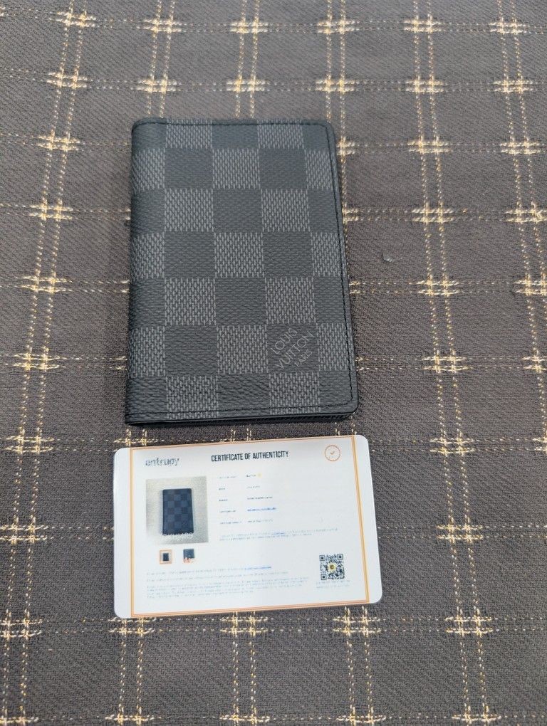 Louis Vuitton Damier Graphite Pocket Organizer card case in black and grey coated canvas.
