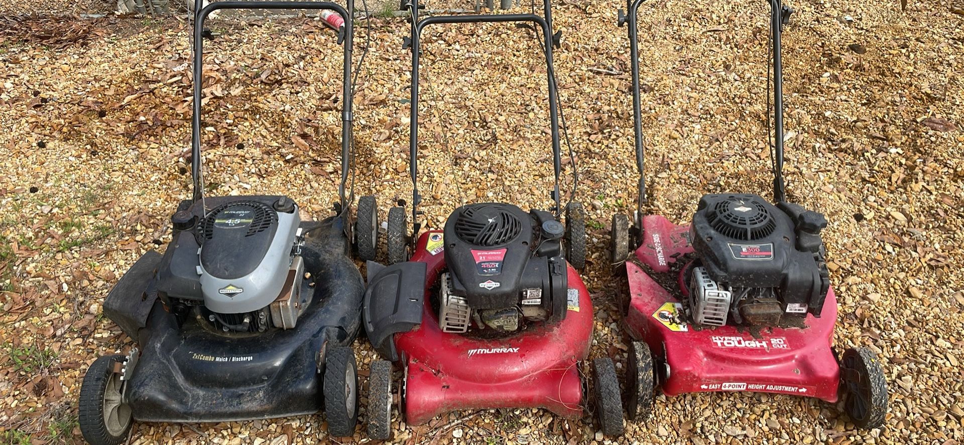 3 push mowers all 3 need work. None are currently running. I think most of it is carb work that they need but I’m not certain. Take all 3