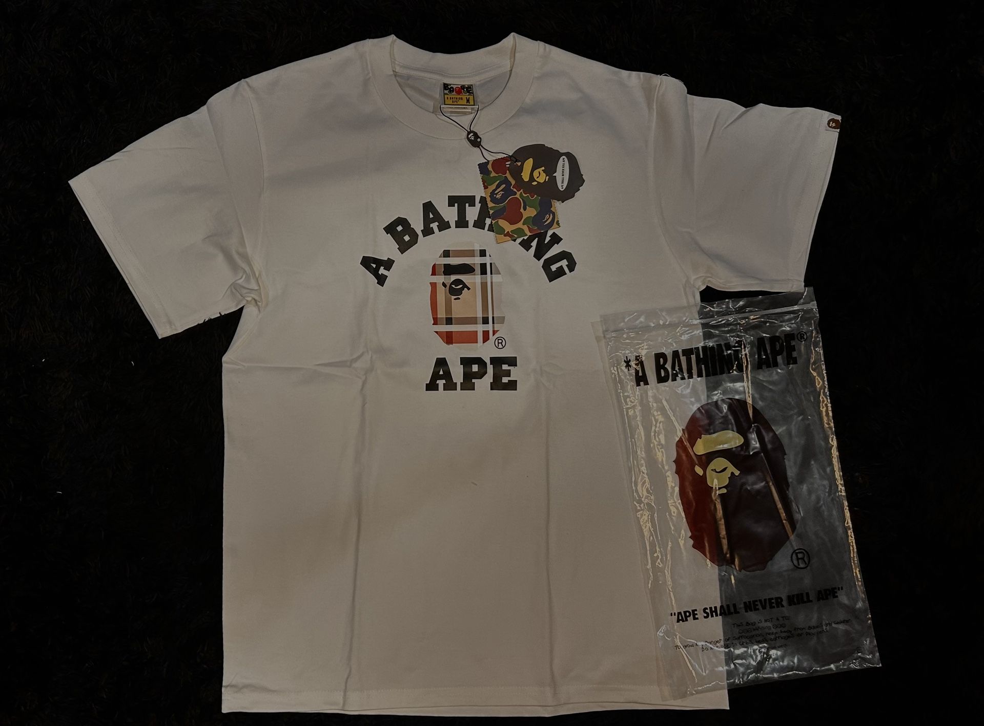 -BAPE A Bathing Ape Burberry Check by Bathing Tee White -sizes s-m-l -new never used -shipping, pickup, meetup, and drop off available