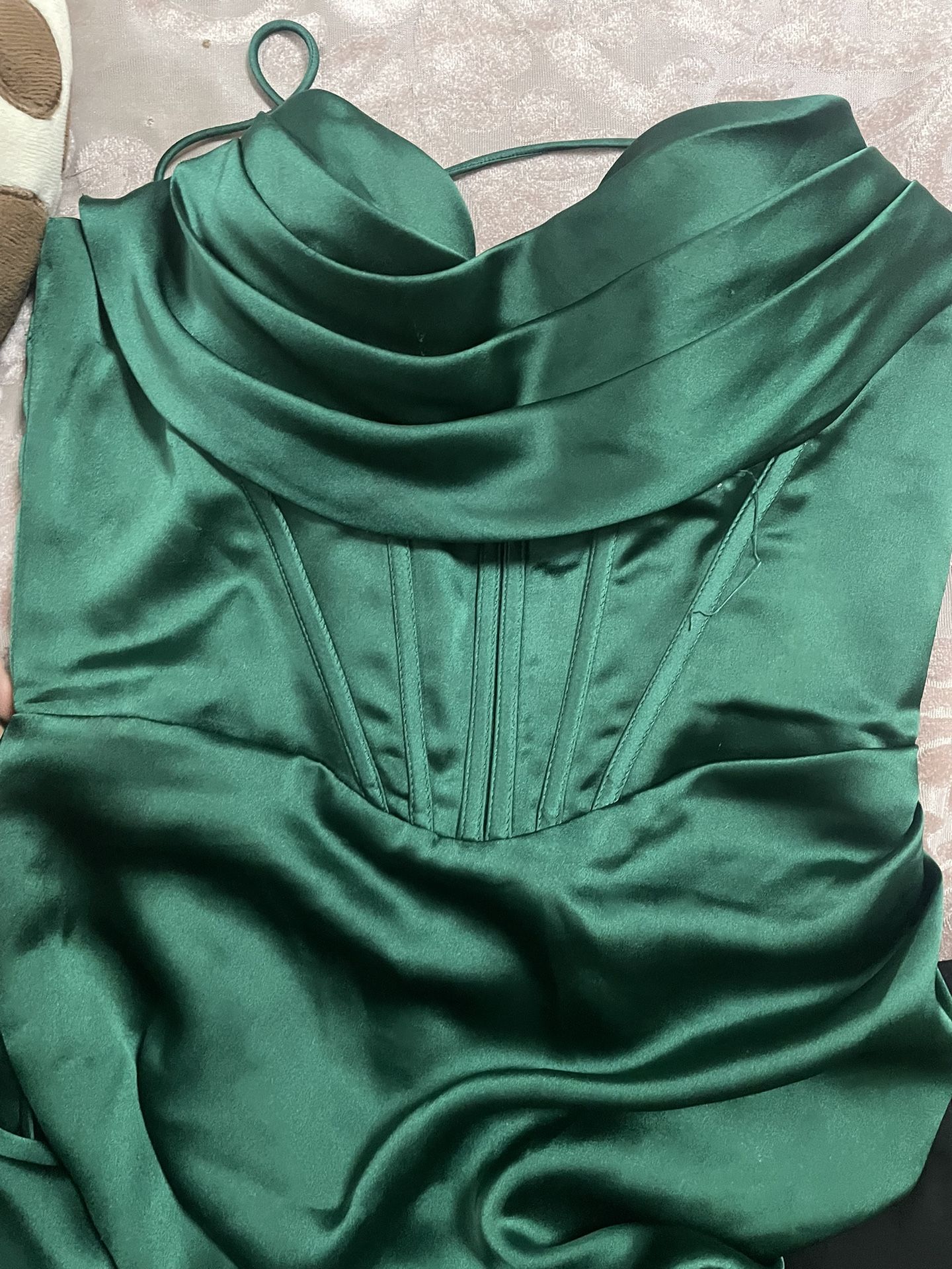 Silky Esmeralda Long , Thigh Slit Long Dress With Corset