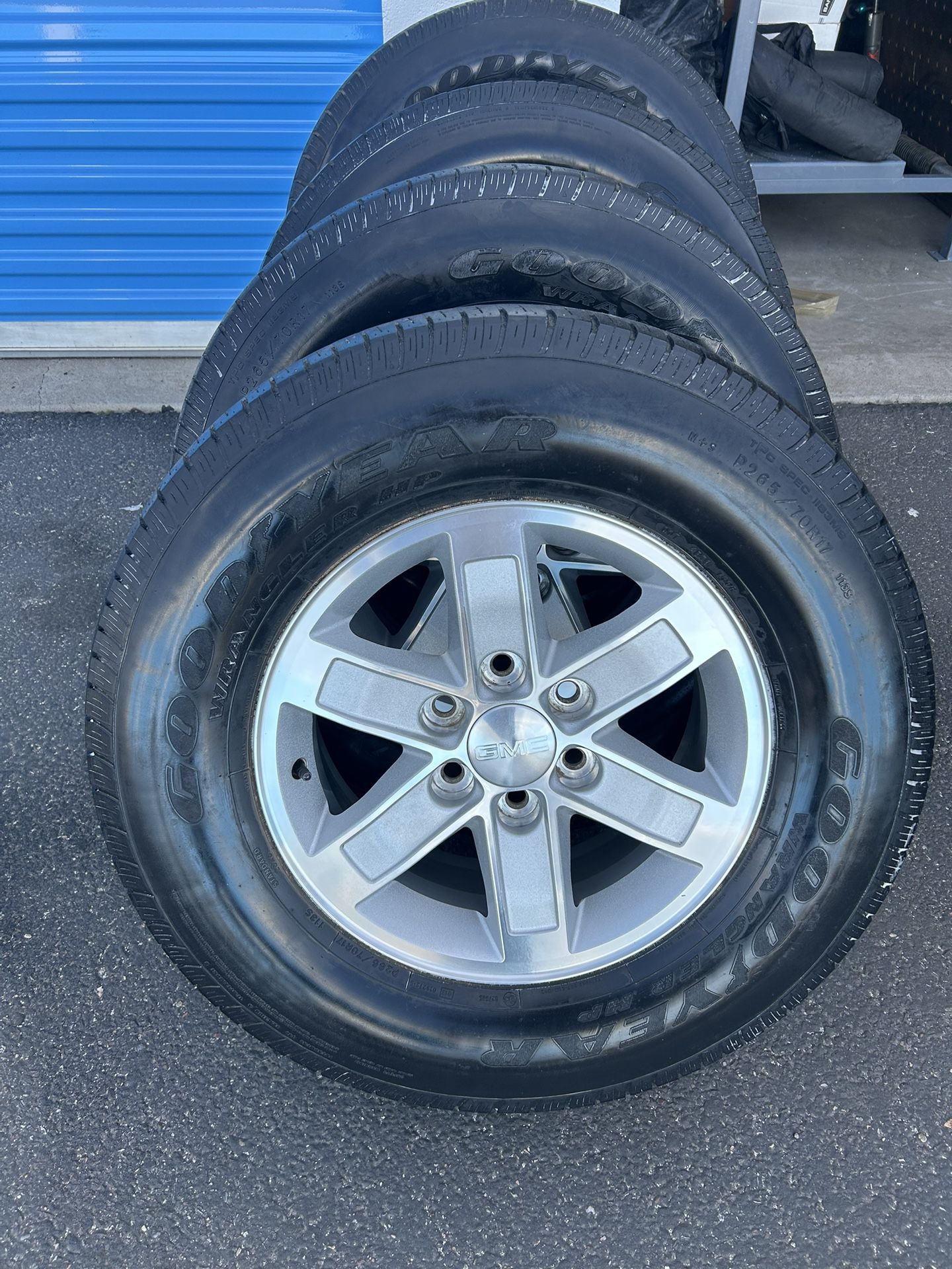 Selling a set of GMC rims with tires Rims are in excellent condition 6 lug Tire size 265/70R 17 $500