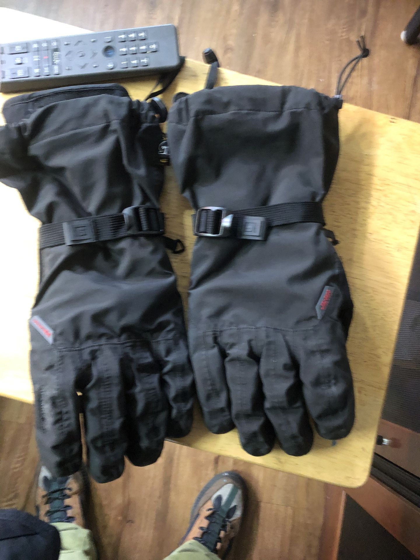 Gloves are burton brand x large, Pants are the north face menium I’m in 125 th and powell blvd