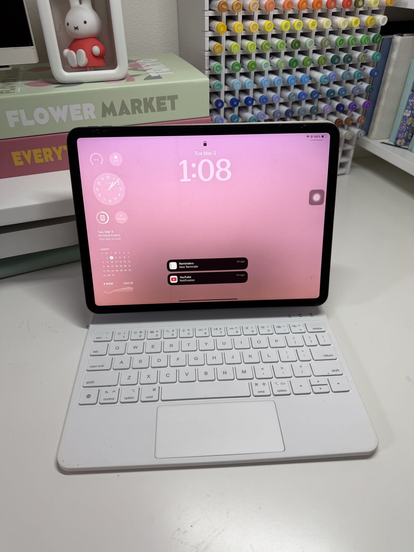 Selling an iPad case with built-in keyboard. Works great and connects easily. It’s a dupe of the Apple Magic Keyboard. It has a small stain/minor dirt on it, but it’s not noticeable once the iPad is attached. Overall still in good condition.