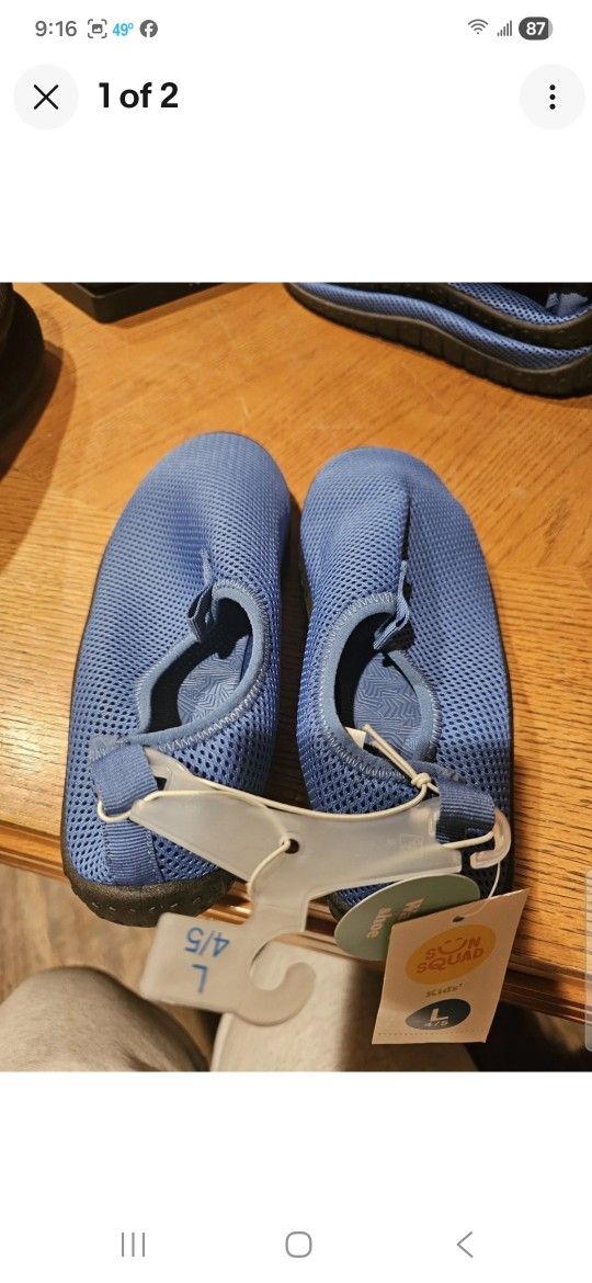 The Sun Squad Kids Water Shoes in size Large (4/5) are specifically designed for young water sports enthusiasts. These shoes provide a comfortable fit for kids who enjoy activities like swimming, surfing, or simply playing in the water. With a durable construction and easy-to-wear design, these water shoes are perfect for keeping kids protected and comfortable while they explore the water.