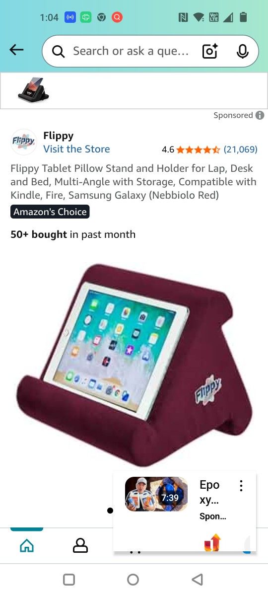 Flippy Tablet Pillow Stand and Holder for Lap, Desk and Bed, Multi-Angle with Storage, Compatible with Kindle, Fire, Samsung Galaxy (Nebbiolo Red) Ama