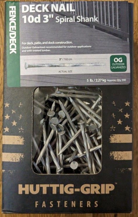 3" Huttig-Grip deck nails case of five 5-lb boxes