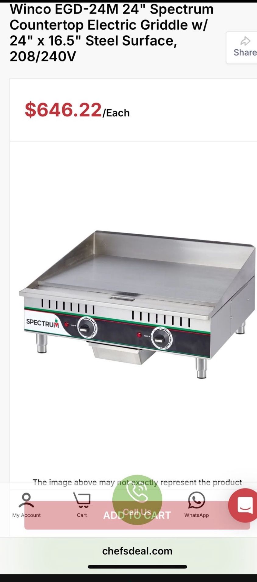 Winco EGD-24M 24" Electric Griddle w/ Manual Controls - 1/2" Steel Plate, 208-240v/1ph Spectrum series Heavy-gauge stainless steel body Solid 1⁄2-in. thick polished steel plate Dual independently controlled heat zones Temperature holding range: 150-480 degrees F Sloped side design with 3-in. backsplash Large-volume removable grease drawer with weep hole and baffle Adjustable stainless steel legs surface: 24" x 16-1/2", solid steel cook plate with 1/2" thick grill surface, (2) independently manual controlled heat zones, 150°- 480° F