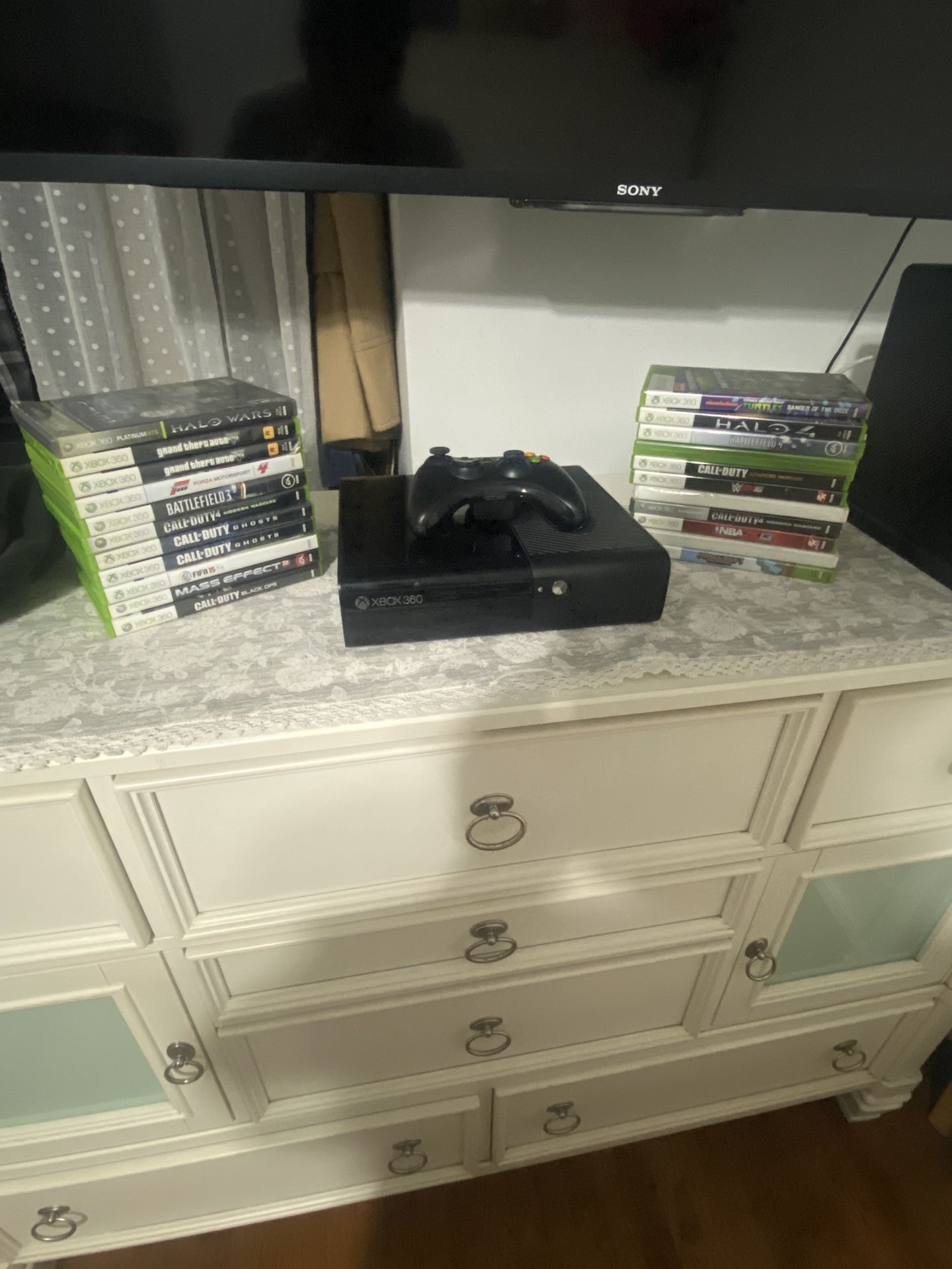 -19 plus games -1 Controller -Power Cord/ HDMI Cable -No Hard Drive There are games that are pretty scratch up and some are decently scratch up as well with the console. Everything works. No shipping.