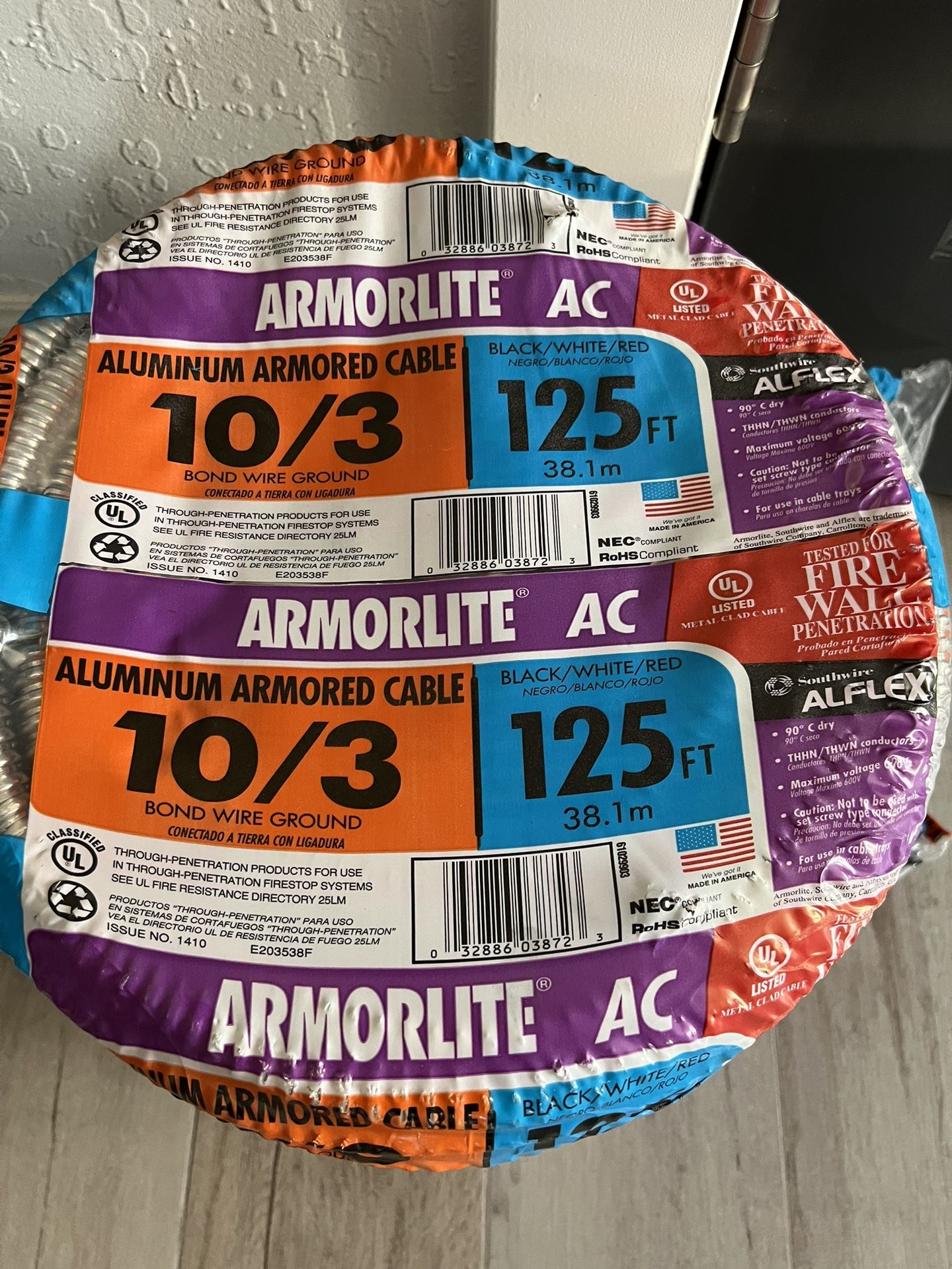 125ft 10/3 THHN Armorlite Aluminum Armored 10GA Copper W I ire