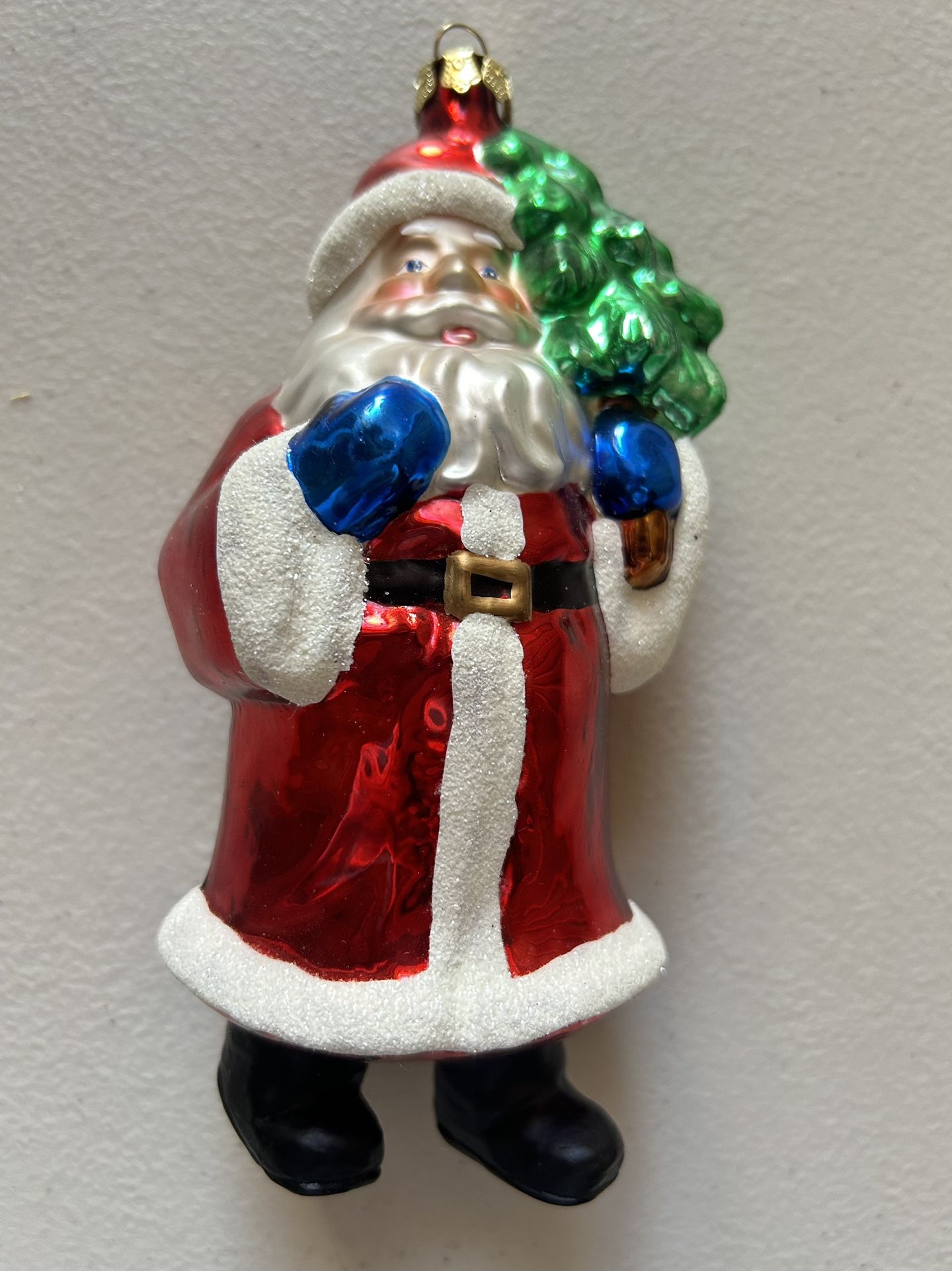 Santa with tree Christmas Ornament Glass, with small Santa Size: 7” x 3”