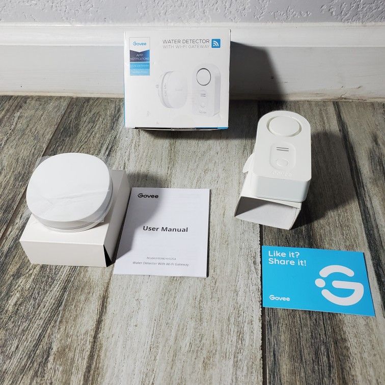 Govee WiFi Water Sensor, 100dB Adjustable Audio Alarm and Smart App Alerts, Leak and Drip Alert with Email, Detector for Home, Basement(Not Support 5G WiFi) Open box, never used. Protection film attached. Great for vacation houses, rentals property, and homeowners. No more water heater leaking damage. Amazon is selling $30 Pick up nearby Tatum Blvd and Bell Road Please check other listing