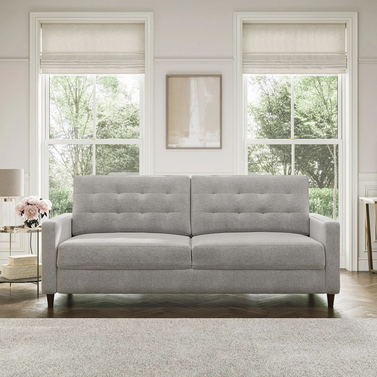 We offer delivery and Installation. Call now to inquire! 562-568-8883 brand new in box Features: Sofa Extends for a Lounge Option Modern Silhouette with a Mid-Century Feel Tufted Back Cushions Add Style and Comfort Tapered Legs in a Warm Brown Finish Upholstered in a Soft, Neutral 100% Polyester Fabric