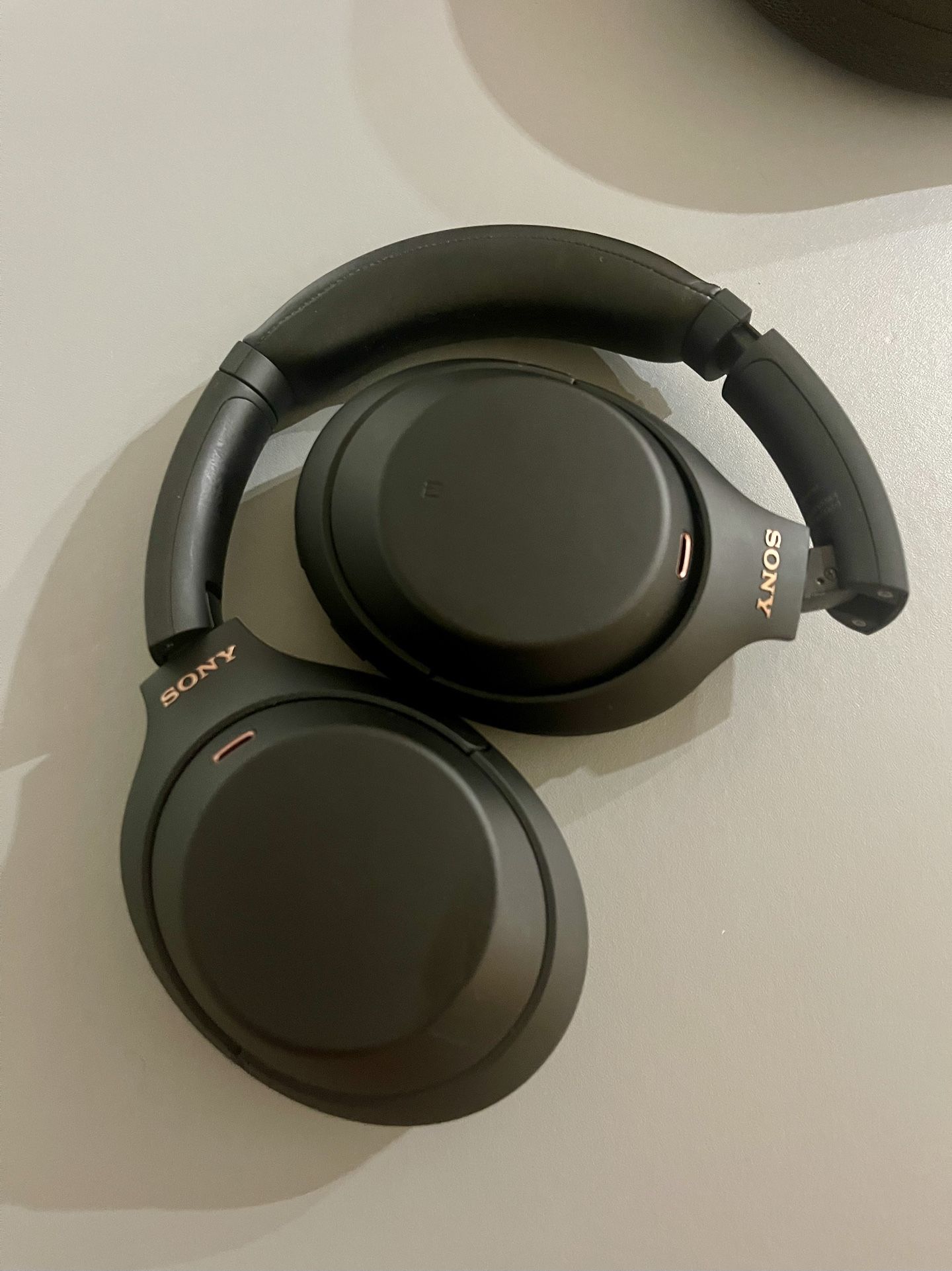 Black. Like new, except for one imperfection. Only sign of wear and tear is on the right ear cup (see picture). Replaceable ear cups can be purchased on Amazon for like $10. Comes with charging case and cables. Box is in storage, but I can deliver it at a later date, if necessary. Must pick up in Montebello. No trades.