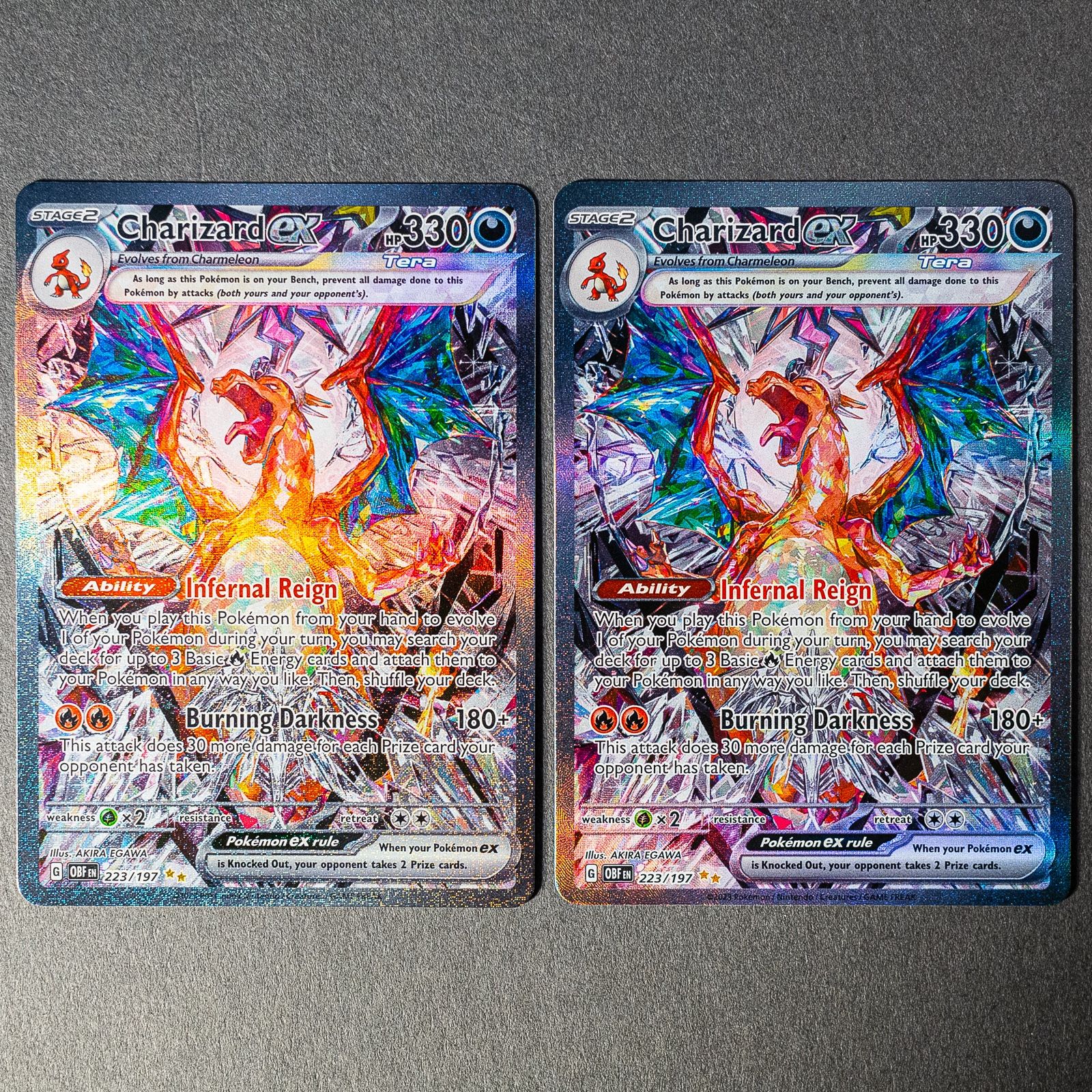 2X Pokemon Charizard ex 223/197 LP Lightly Played, Obsidian Flames SV03 Special Illustration