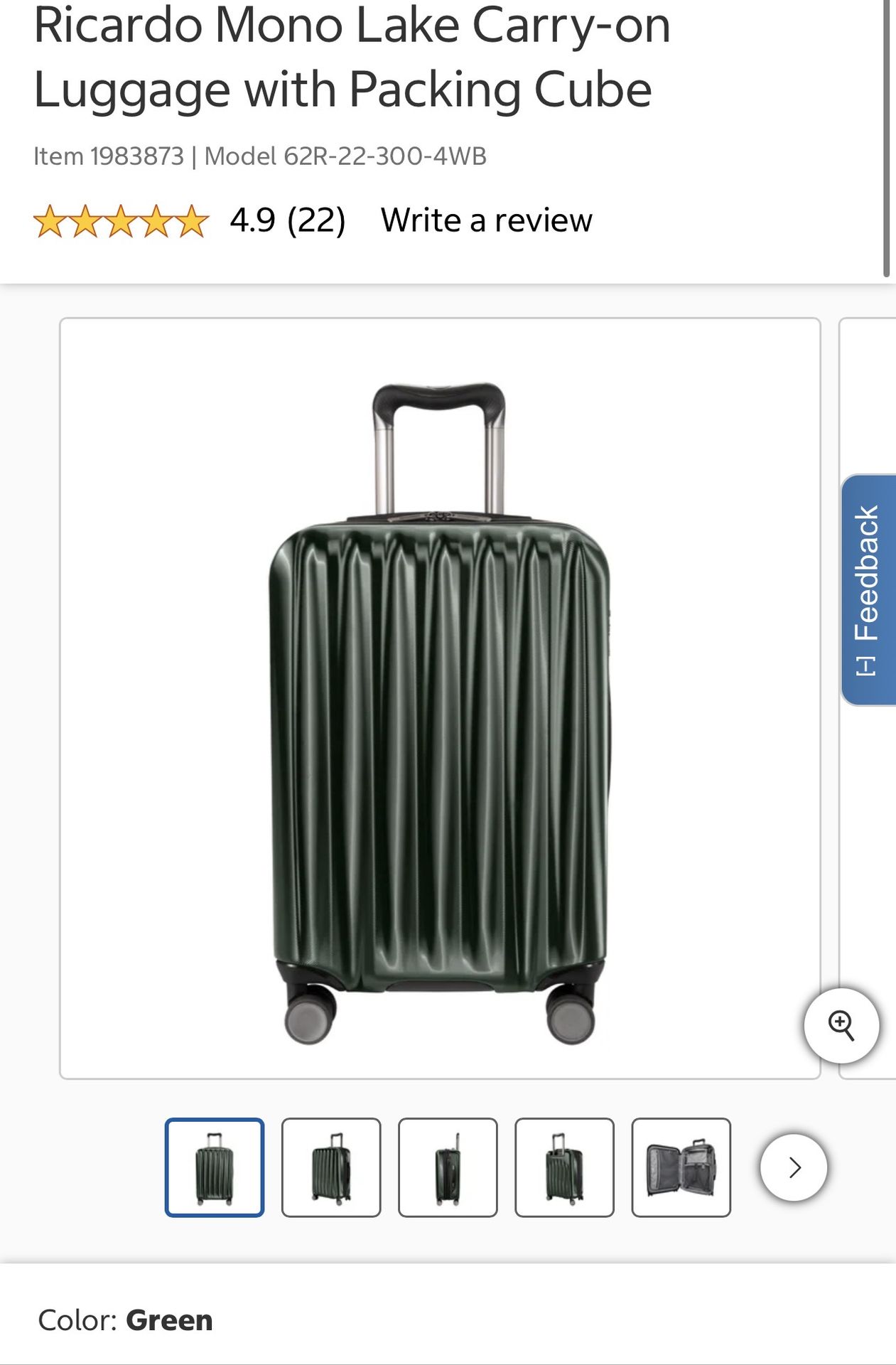 🧳 Ricardo Mono Lake Carry-On Luggage (Green) + Packing Cube Retail Price: $89+ My $69 Condition: Brand new Description: Stylish Ricardo Mono Lake carry-on suitcase in green. Lightweight, durable hard shell with smooth 360° spinner wheels. Perfect size for overhead bin travel ✈️ • Carry-on approved size • Telescoping handle • 4 spinner wheels • Interior divider + packing cube included • Modern textured design • 4.9⭐ rating Great for weekend trips or business travel. Pickup: Vancouver 192nd (near Camas Costco) / SE Portland Available now — message me to schedule pickup.