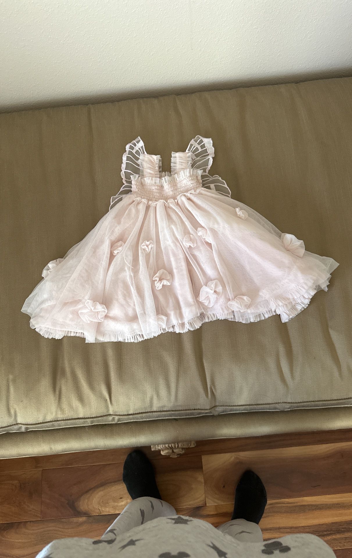 I have for sale this super cute pink Luna Luna fluffy baby dress with wings . Size 6 months. Great for taking cute baby pictures .Please message if interested