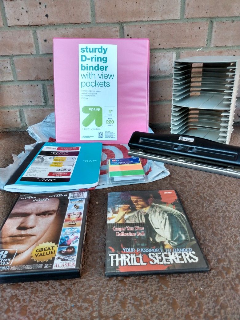 ASSORTED ITEMS - BRAND NEW SCHOOL SUPPLIES MOVIES CD TOWER SOLID PAPER PUNCH ETC. MOVING EVERYTHING $5.