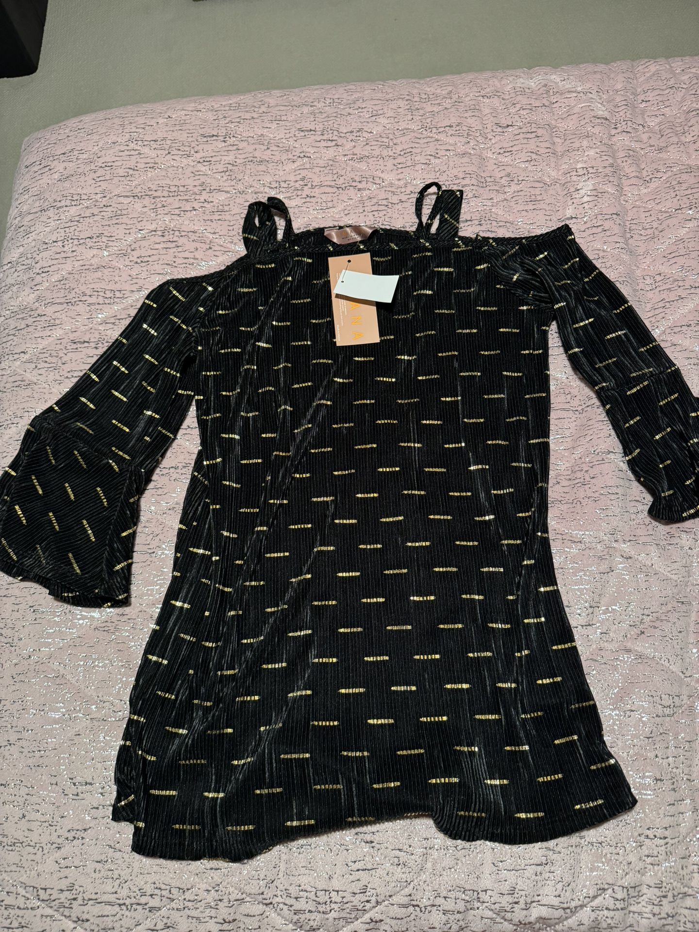 Nwt Womens Black Gold Medium Black Ribbed Dress Shirt Blouse