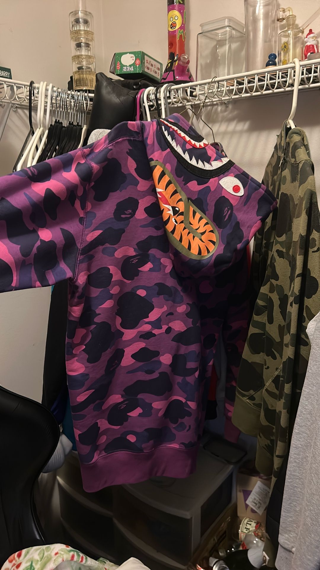 Large 100% legit shark face bape hoodie Stitching pictures included Very very clean only worn 3 times. 9.5/10 condition