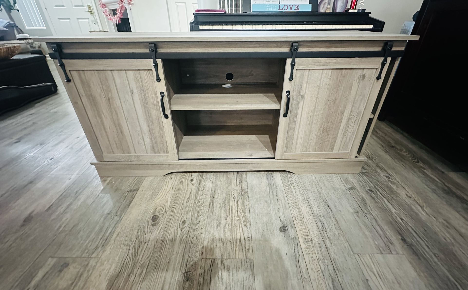 My husband built this tv stand few days ago. Unfortunately, we didn’t realize the length/height was too small, so it’s not what I expected. Brand new and never used. Selling for $135.