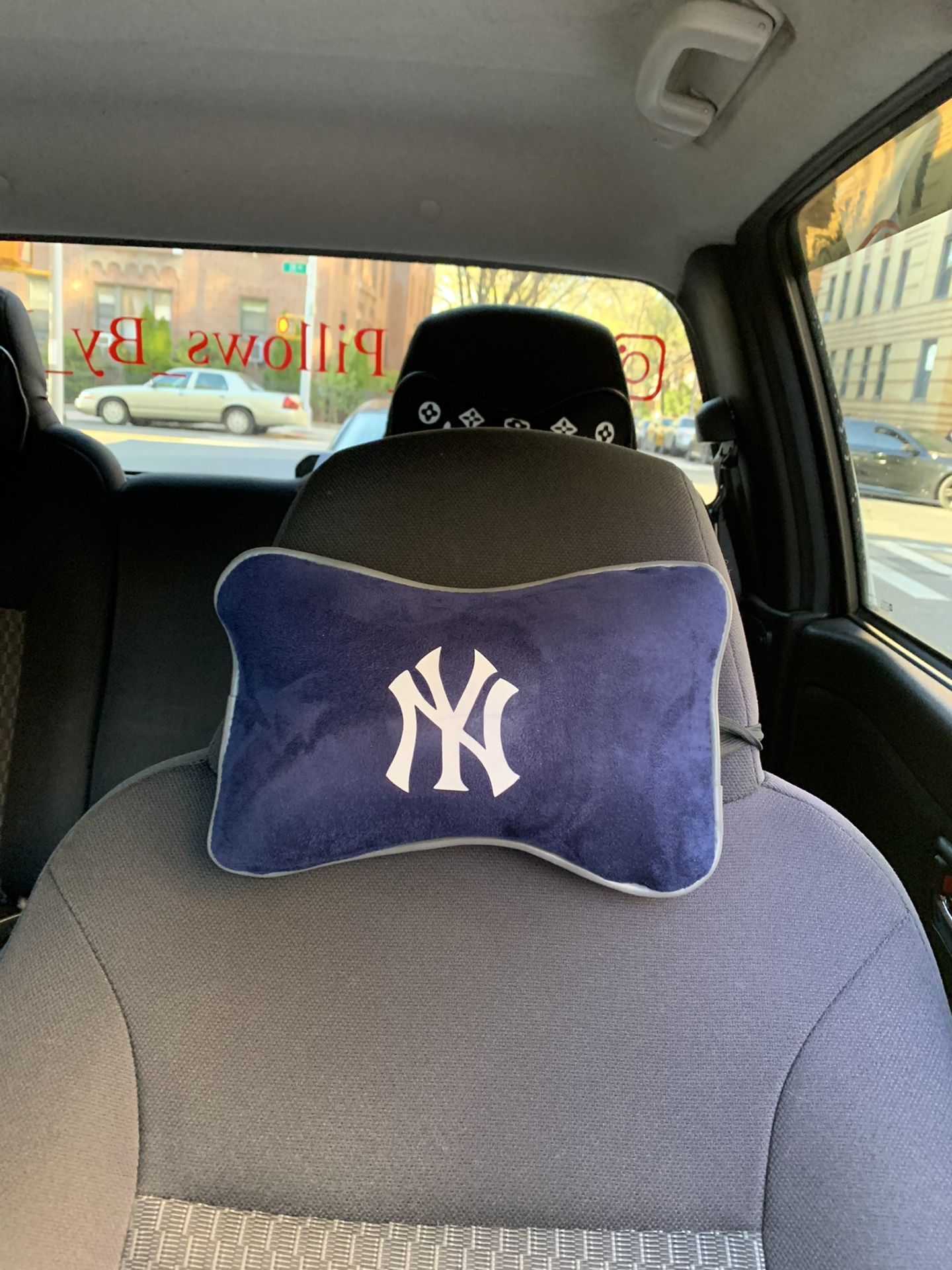 Suede pillow with leather trim for headrest Instagram: car_pillows_by_louiev