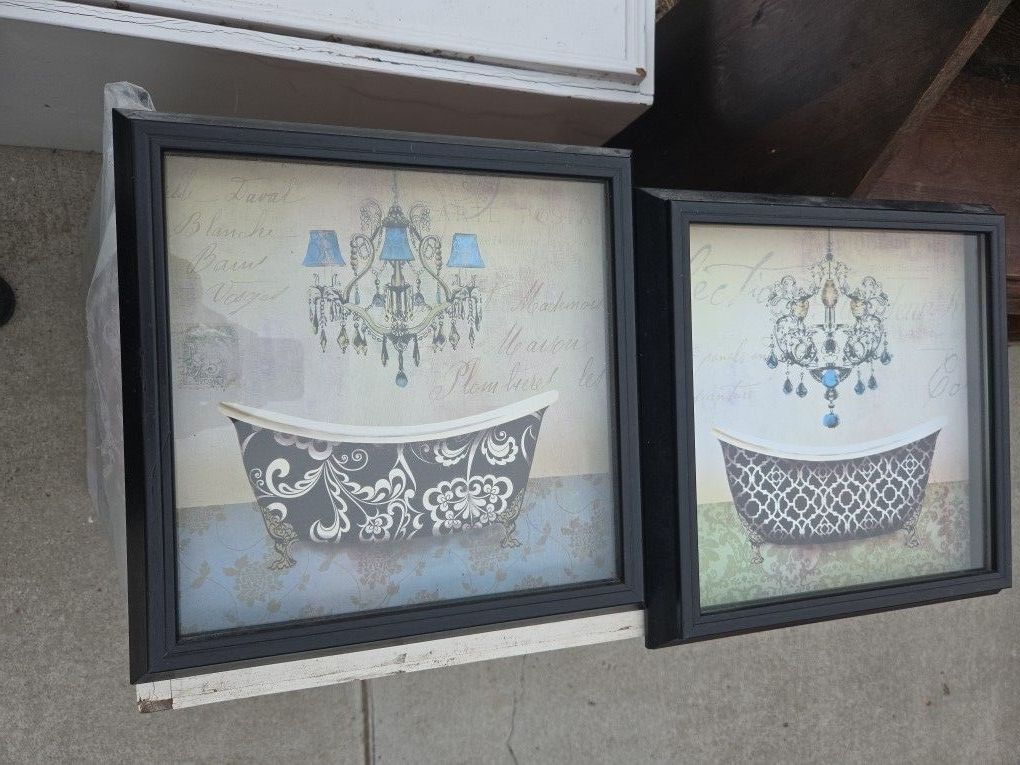 Set Of Two Bathroom Shadow Box Style Prints