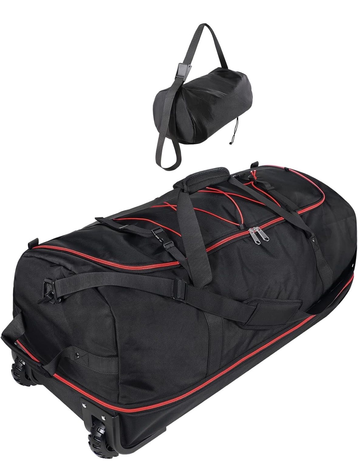 32” 1680D Oxford Foldable Duffle Bag with 2 Wheels,110L to 140L Expandable Soft Sided Rolling Travel Bag,Black-red