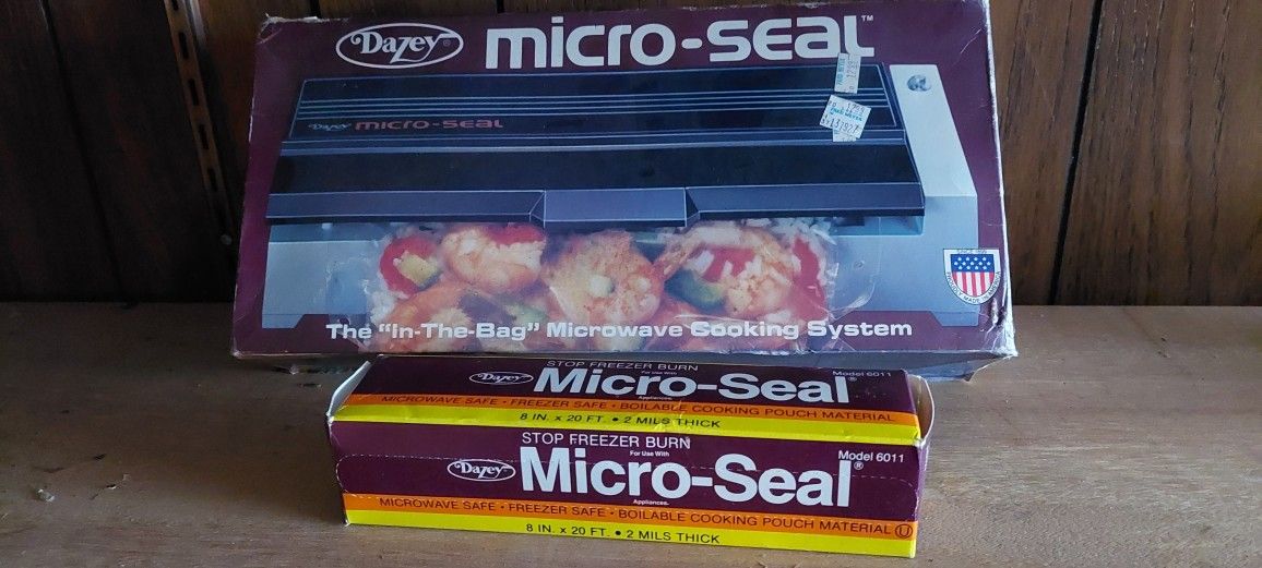 NEW/NEVER USED, in original packaging, Dazey Micro-seal In-the-bag Microwave Cooking System PLUS one 20 ft. roll of seal-bag material.